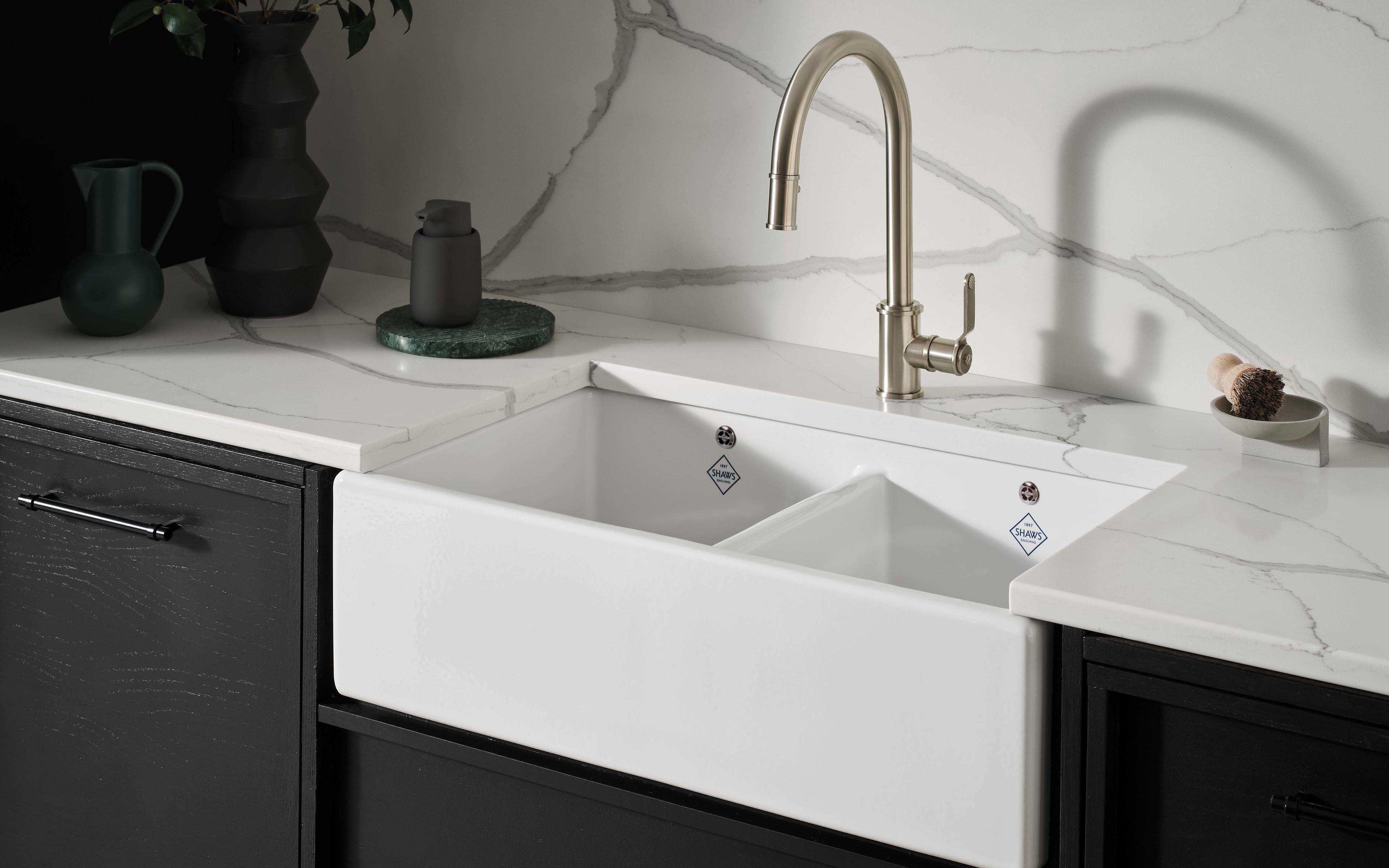 Mit ihren wunderschönen Proportionen und den zurückhaltenden Details ist die Kollektion Armstrong eine Hommage an unsere industrielle Vergangenheit und dennoch eine moderne und luxuriöse Küchenarmatur. Dieses Modell verfügt über eine im Auslauf versteckte Brause, die das Abspülen von Geschirr und Pfannen erleichtert. Ein sanfter Zug löst die Handbrause. Nach Gebrauch zieht sich der Schlauch automatisch in den Armaturenkörper zurück und kann dann als normale Kalt- und Warmwasser-Mischbatterie verwendet werden.