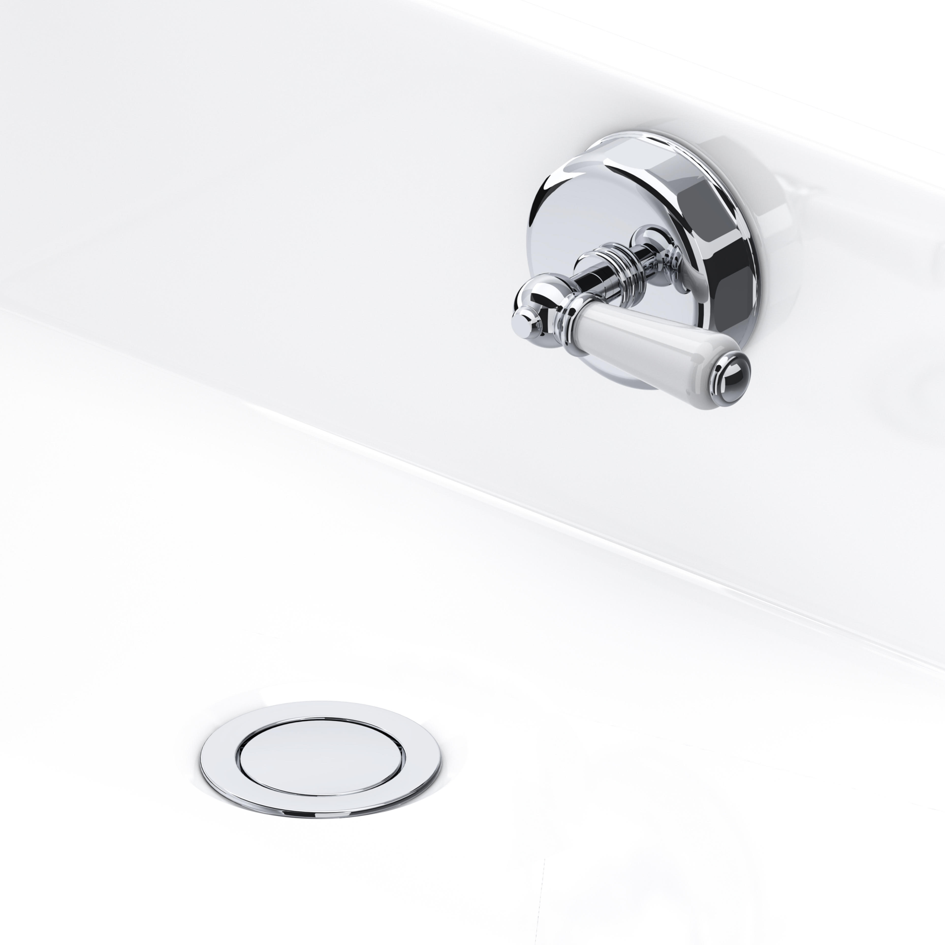 This combined pop-up bath waste and overflow has hidden pipework for use with a built-in or back-to-wall bath, and a lever handle. Also available with longer pipework.