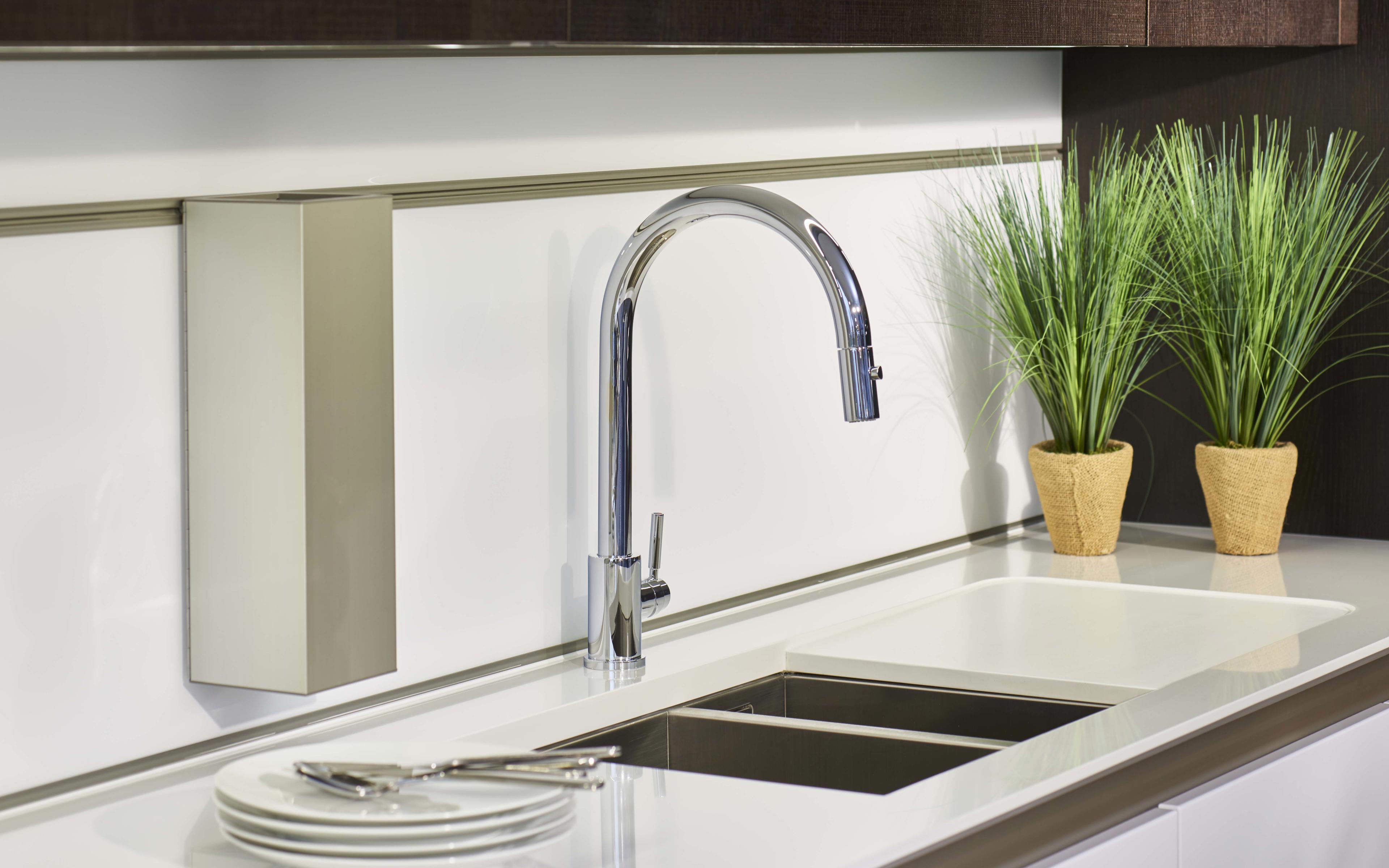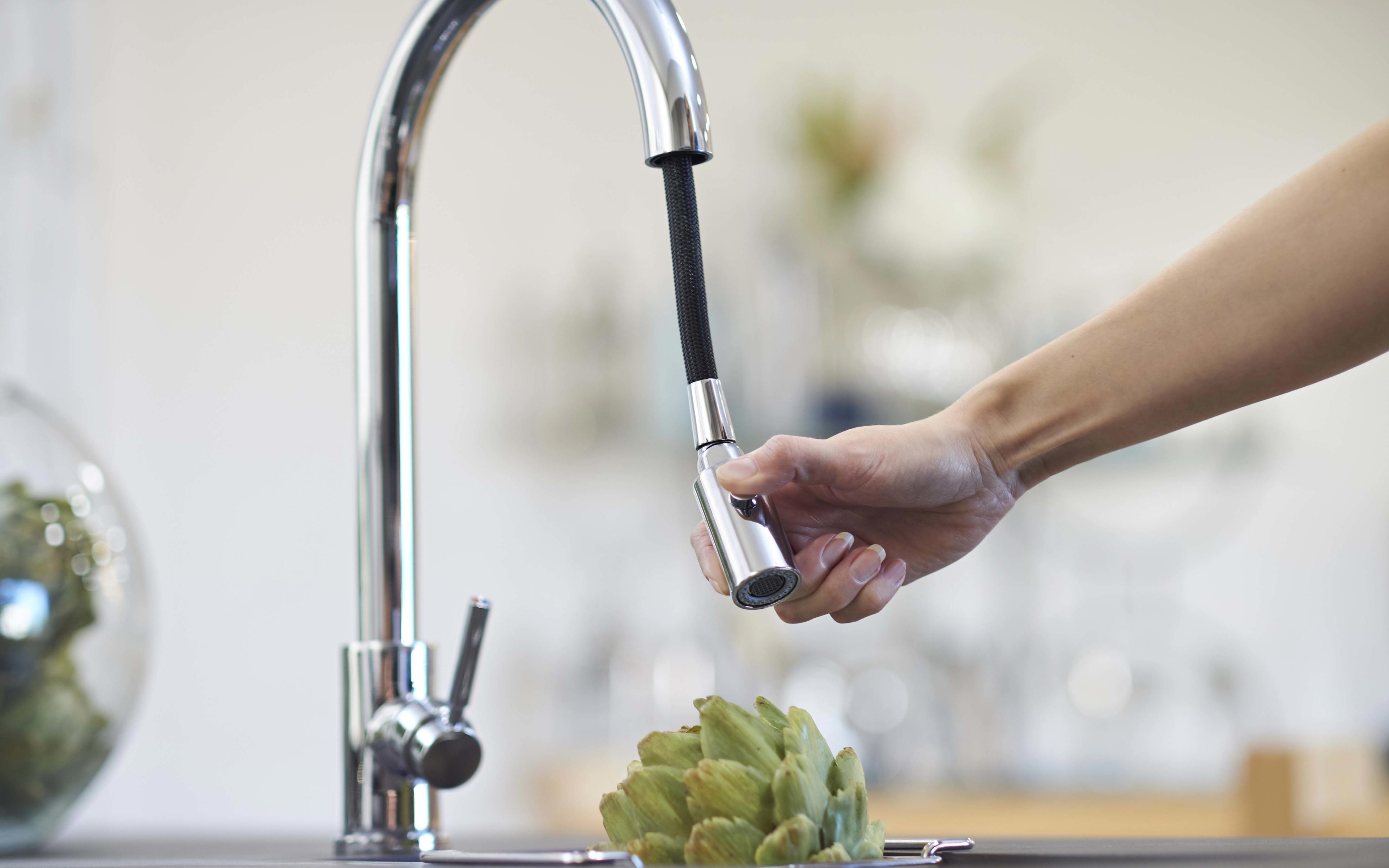 The Juliet collection is one of our most contemporary kitchen collections, and works in most kitchen designs. This tap features a pull-down rinse from the spout, to help with cooking and cleaning in the kitchen.