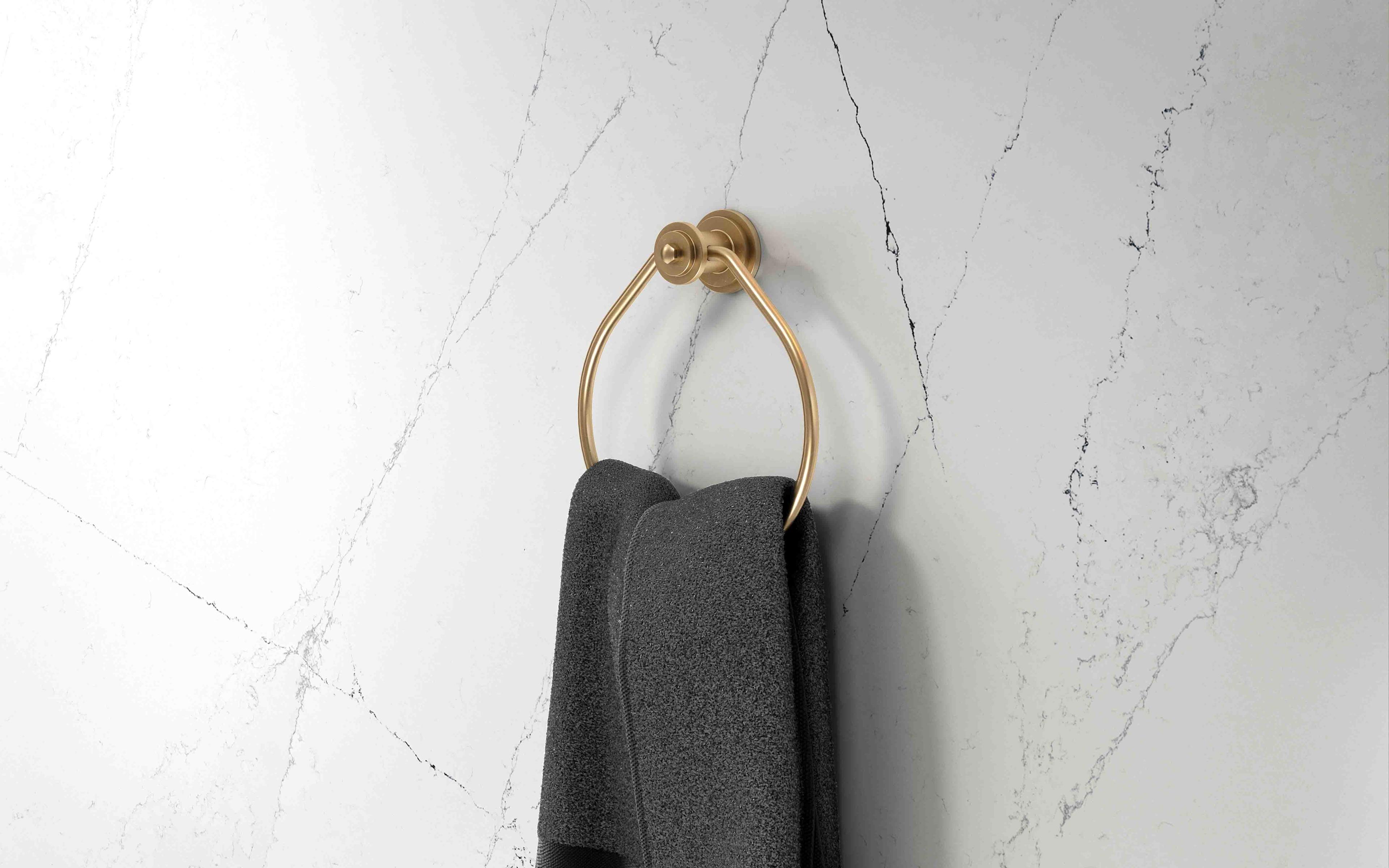 Complete your bathroom with matching accessories. Our Perrin & Rowe Armstrong bathroom towel ring features the iconic details from the wider Armstrong collection, and concealed fixings to provide a seamless, elegant appearance.