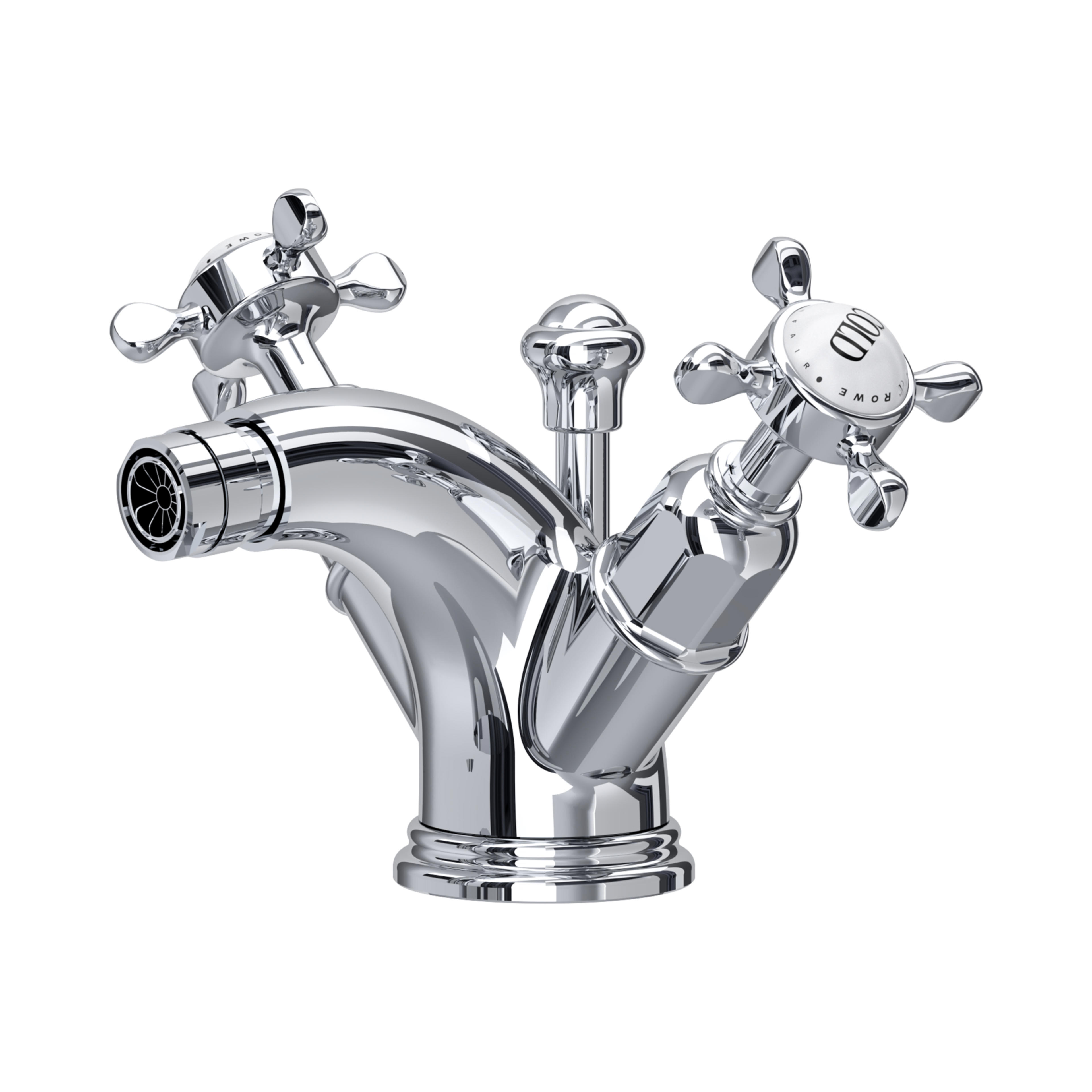 This classically-styled Traditional bidet mixer features elegant detailing and ceramic 'Hot' and 'Cold' indices on the crosstop handles. Supplied with a pop-up waste.