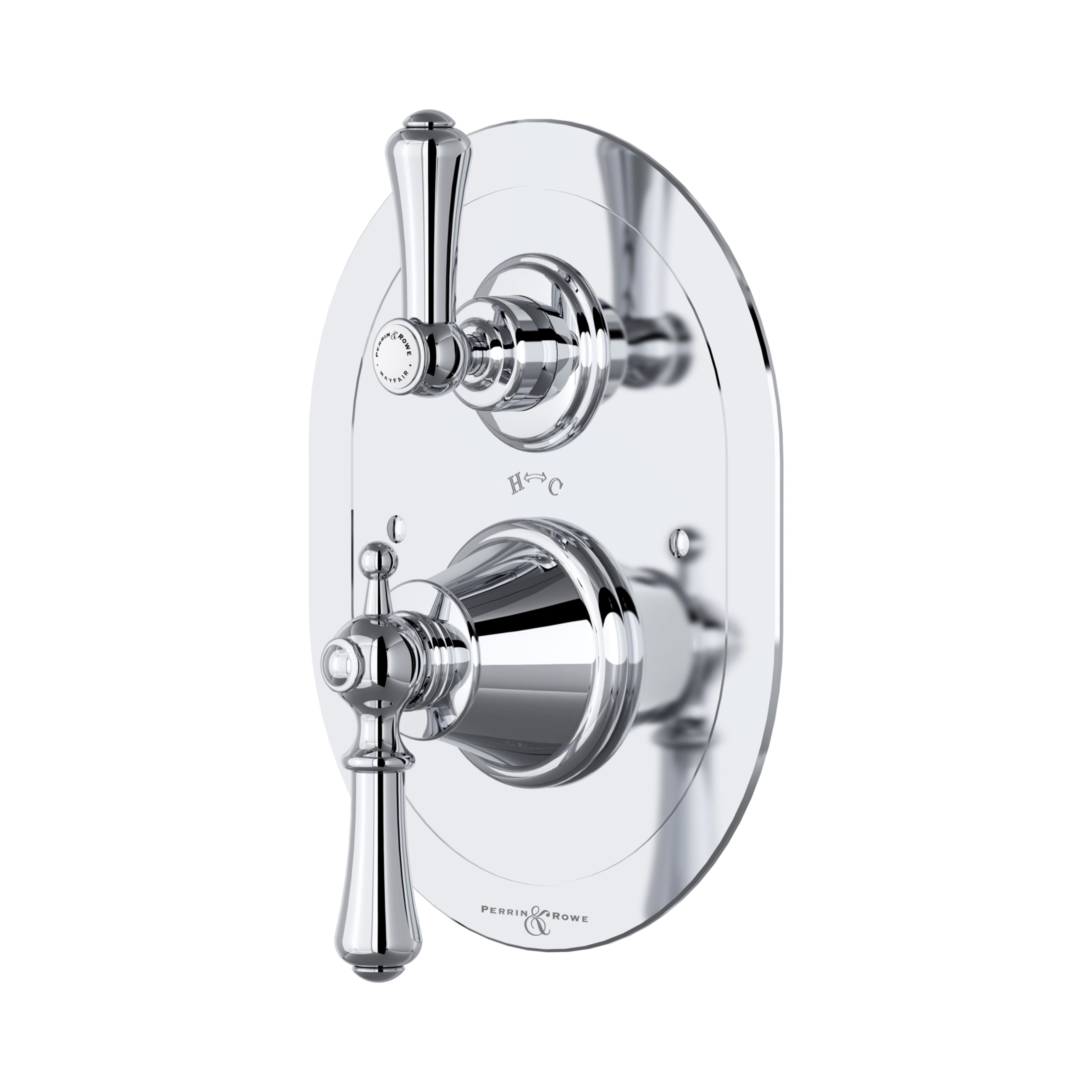 All Perrin & Rowe showers are thermostatically controlled by a highly accurate wax cartridge. This concealed thermostatic mixer from our Georgian collection features lever handles and an oval face plate behind which the valve's pipework is hidden. Choose either a wall valve or diverter from the same collection.