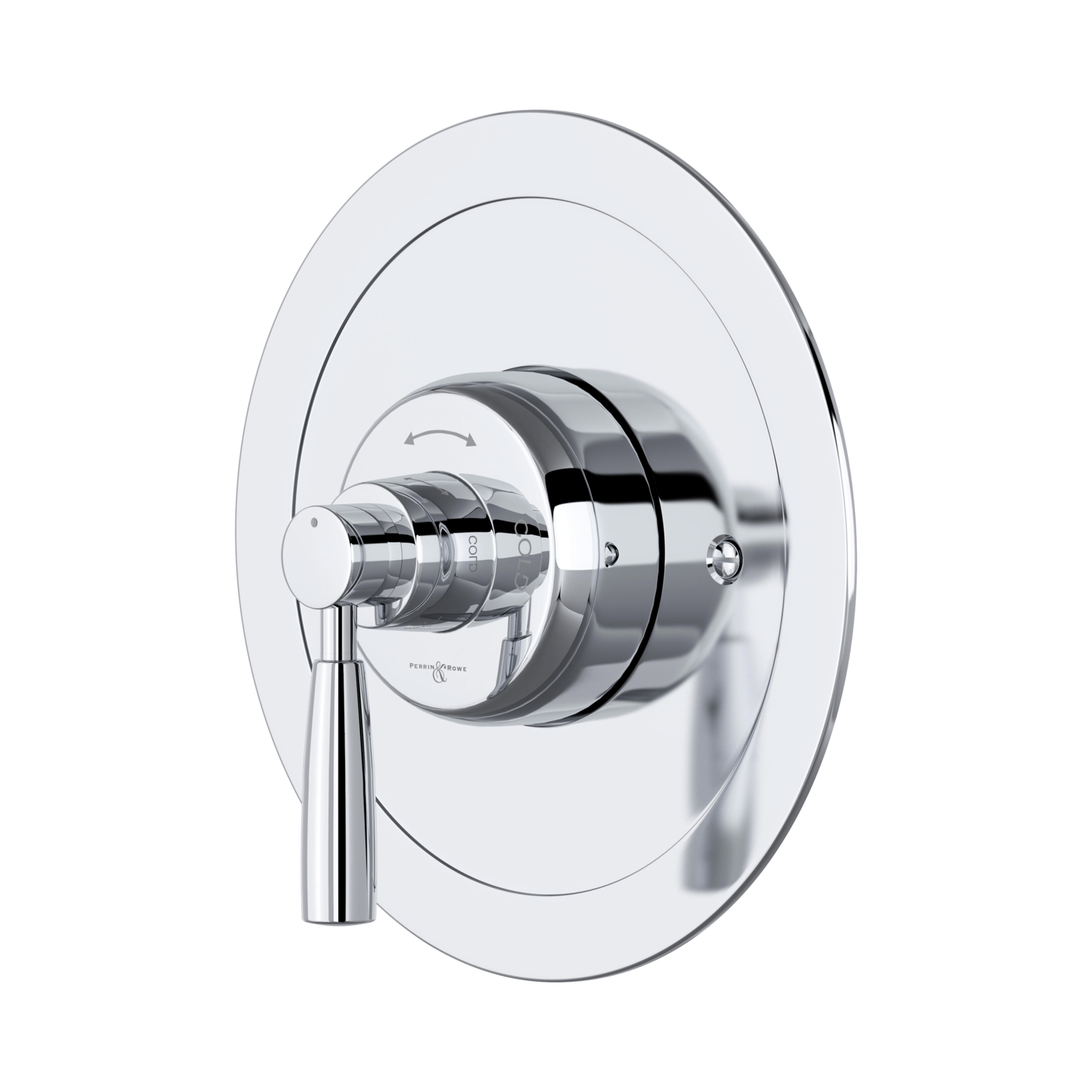 All Perrin & Rowe showers are thermostatically controlled by a highly accurate wax cartridge. This contemporary shower mixer with a lever handle features a round face plate behind which the valve's pipework is hidden in the bathroom wall. Choose either a Wall Valve (3064) or a Diverter with Shut-Off (5895) to control the flow.