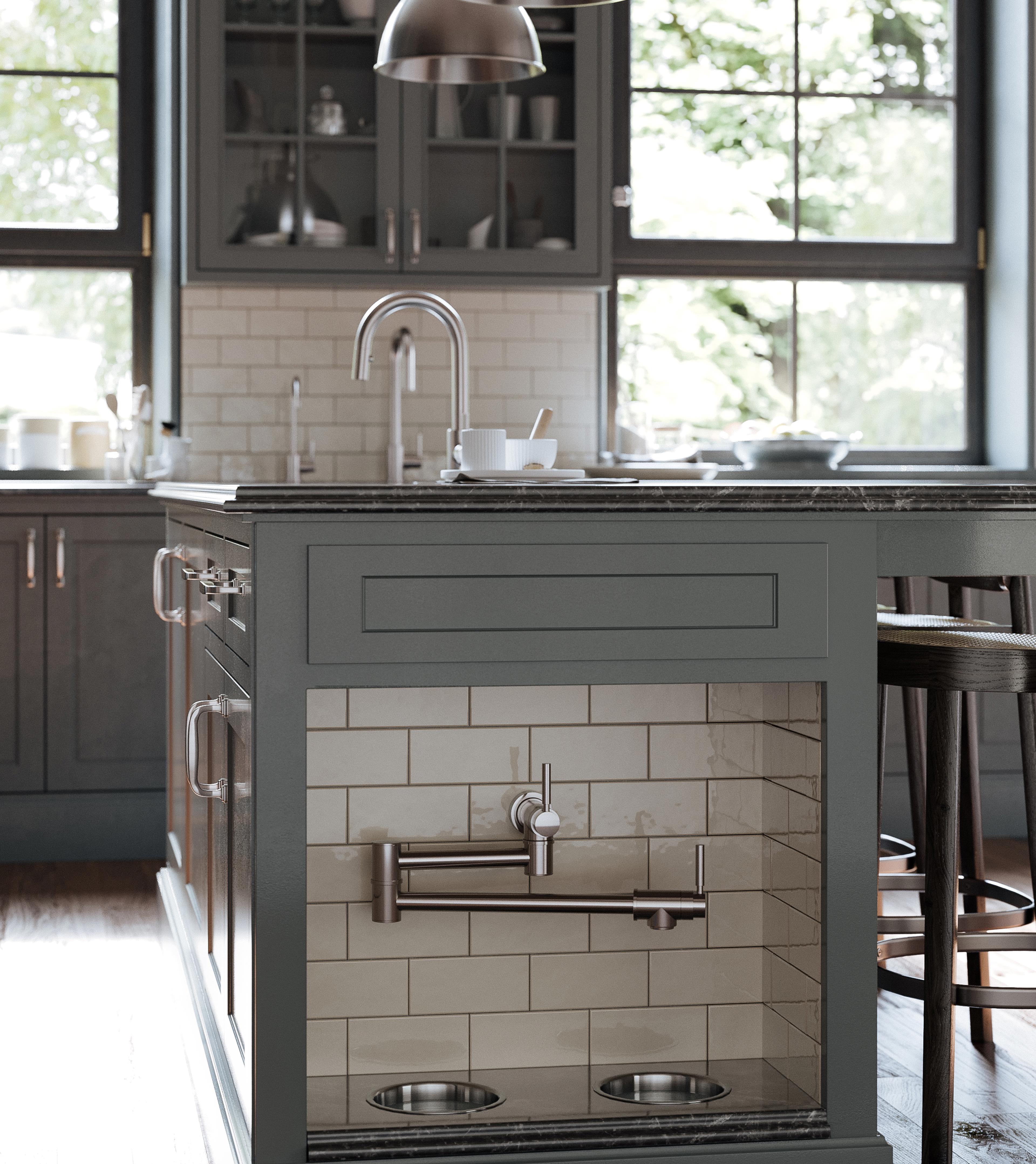 Get the look - A Perrin & Rowe pewter pot filler has been used in this dedicated feeding station.