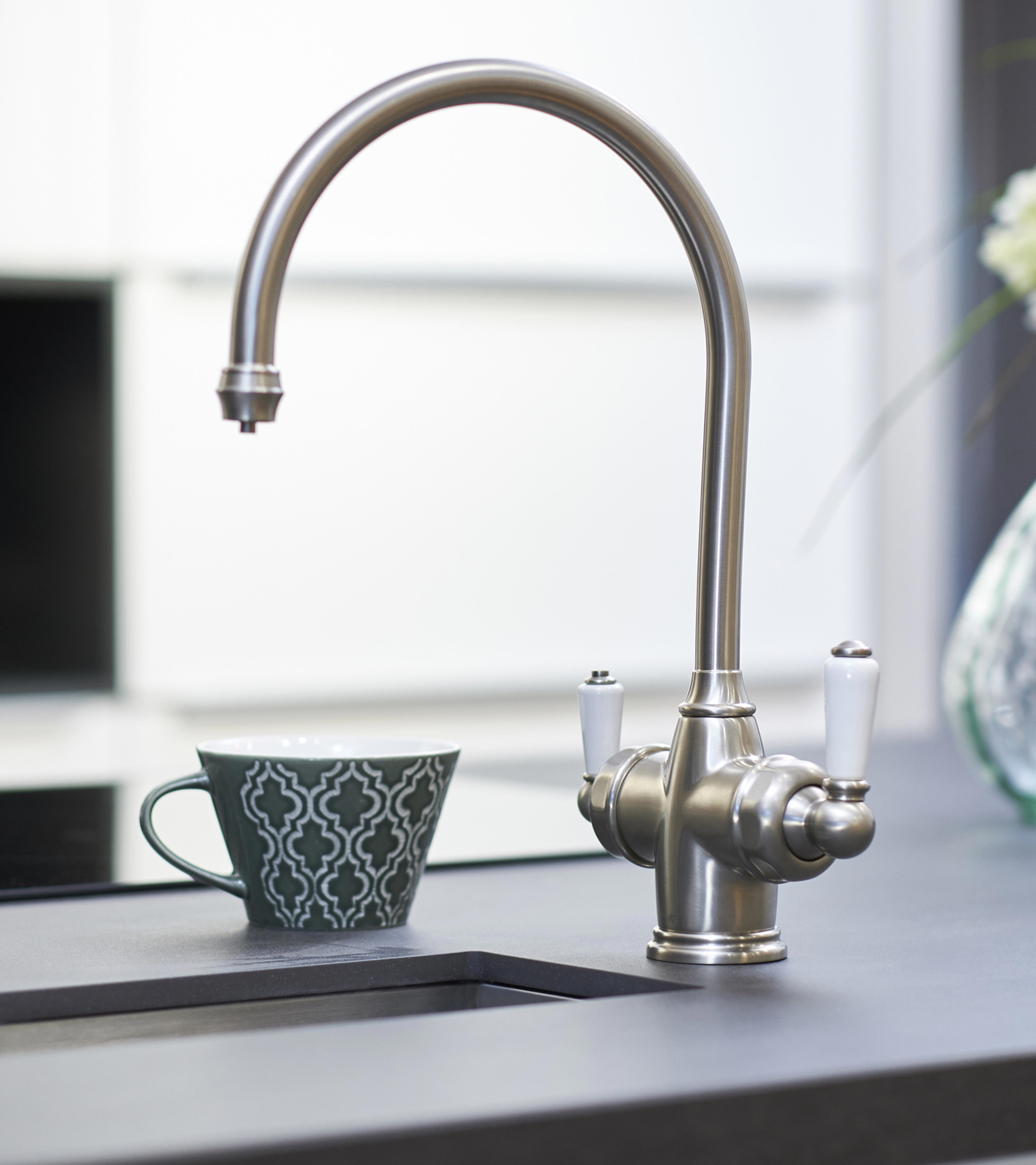 Get the look - Perrin & Rowe’s Phoenician 3-in-1 instant hot water tap dispenses hot and cold water from one lever, and near-boiling water instantly from the other.