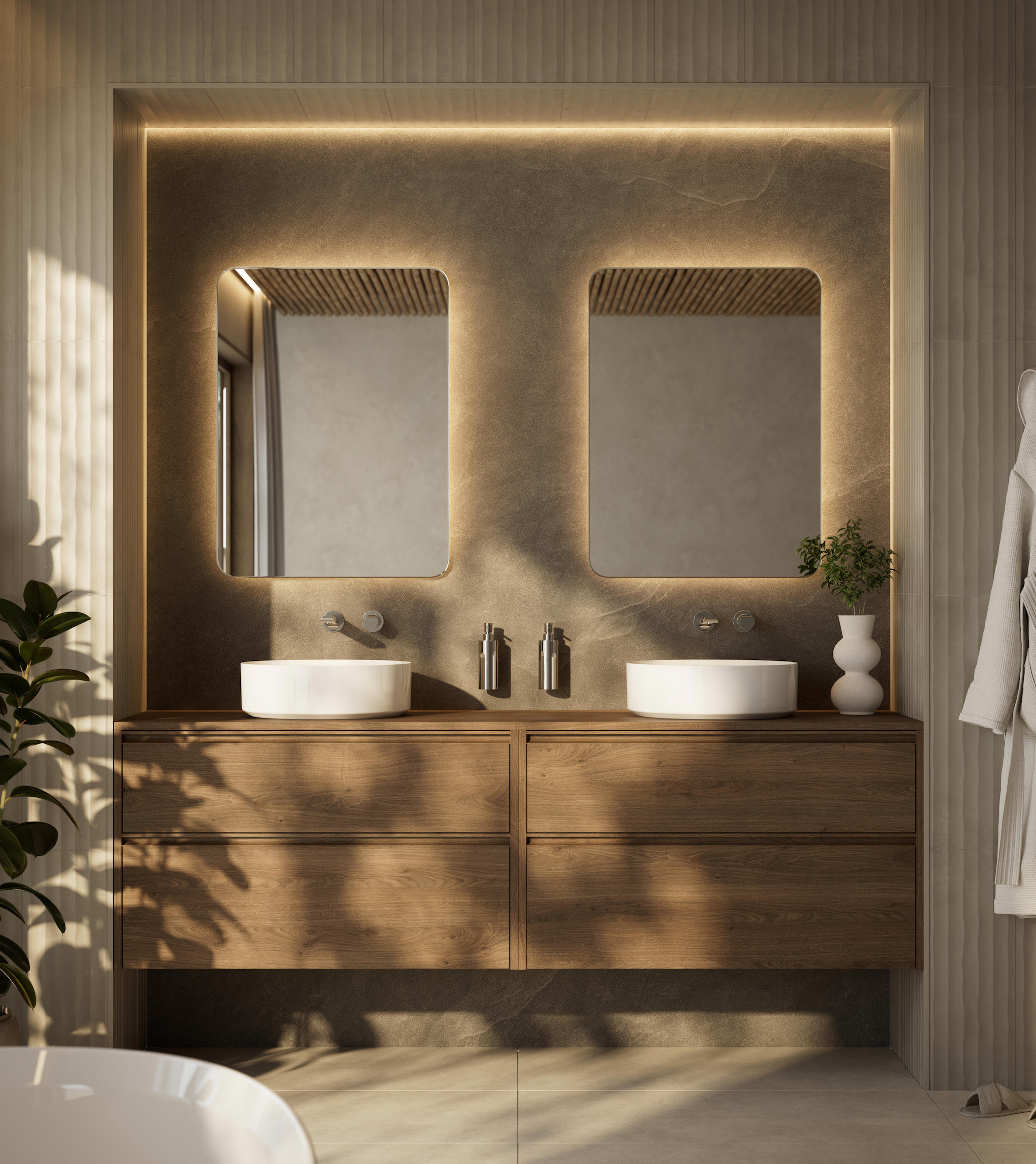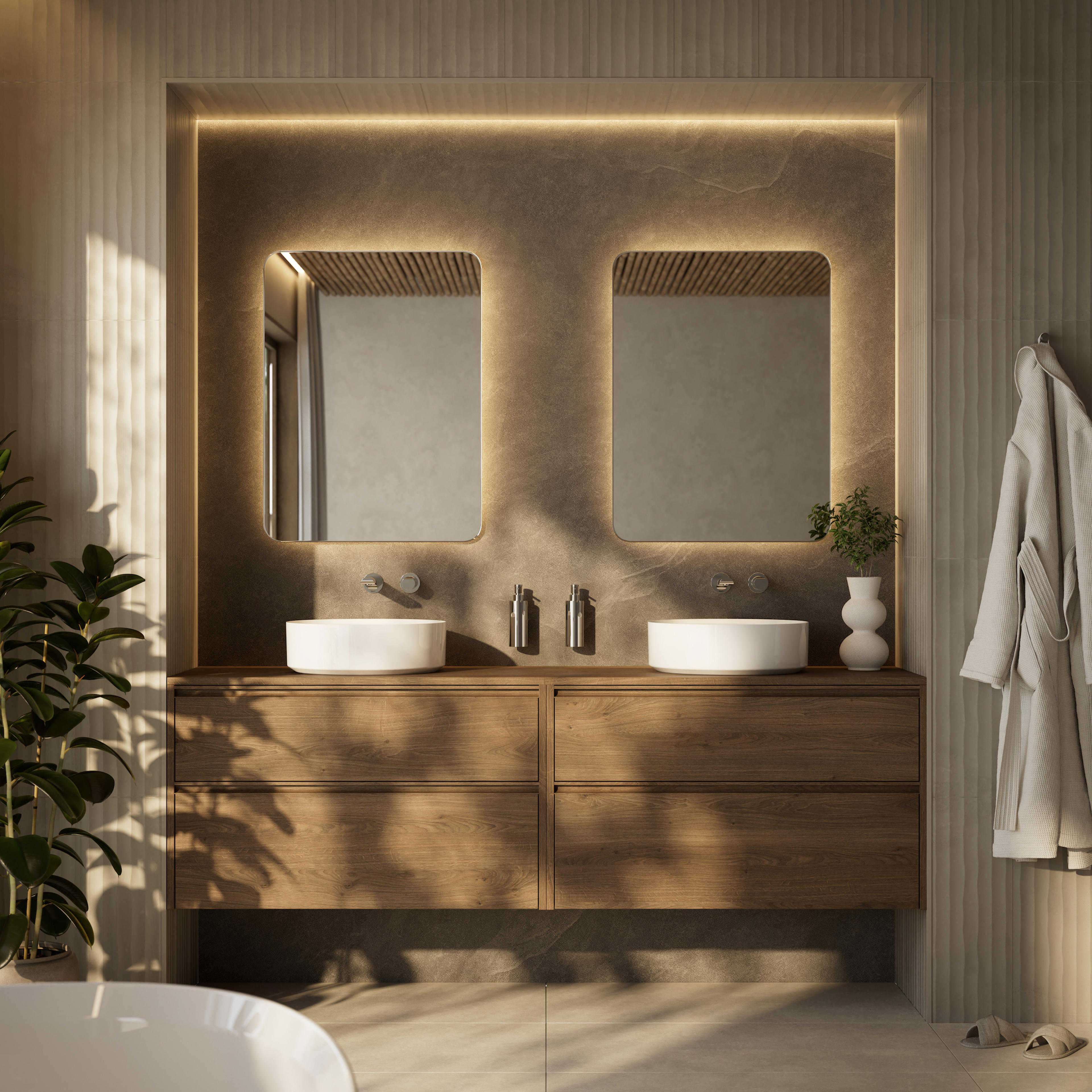 According to Houzz, searches for “double vanity” units have increased by almost 750% in 2025, with “double shower” searches up 172%. Homeowners are embracing dual rituals for shared pre- and post-evening routines.