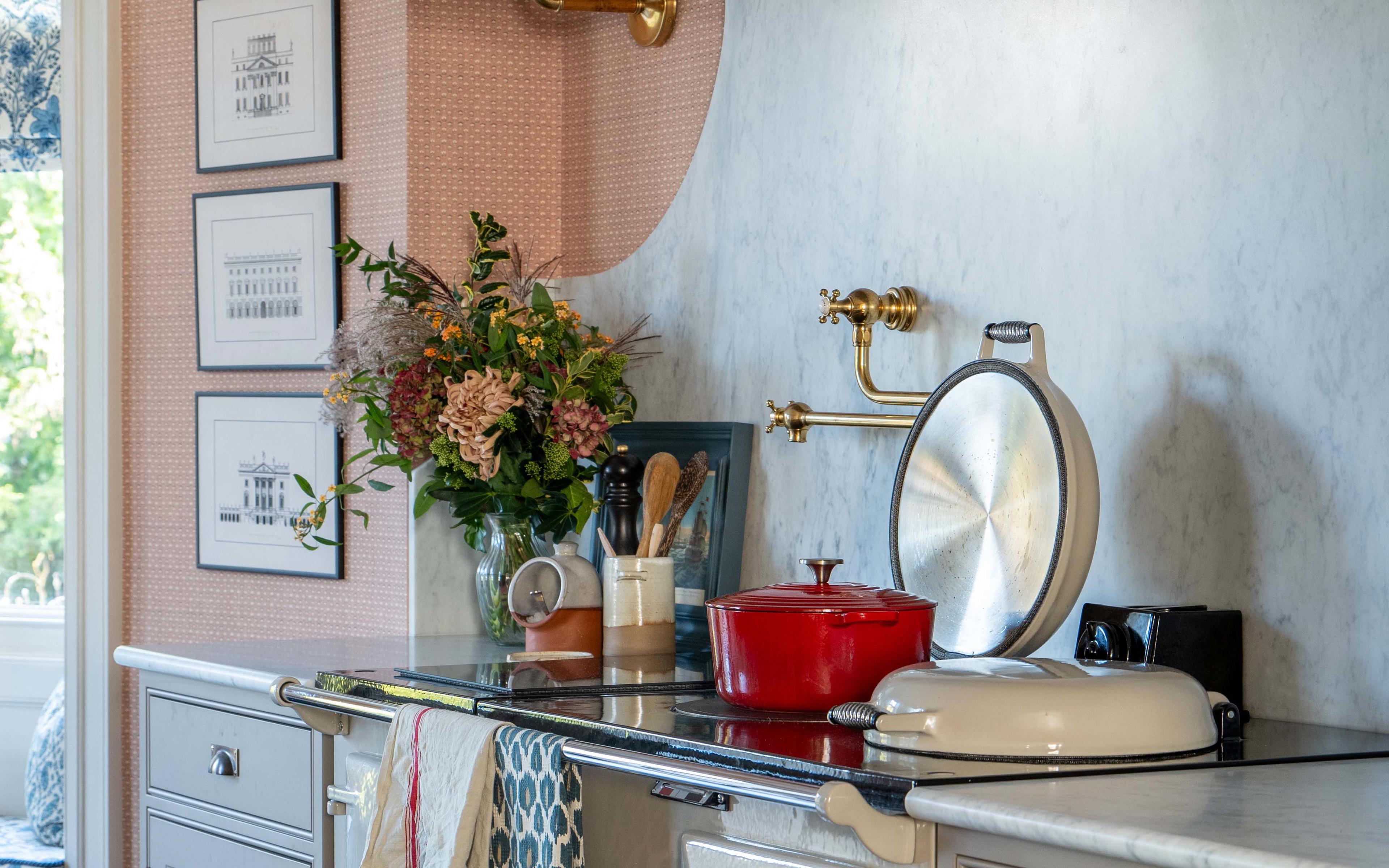 I’ve never had a hot water tap, and genuinely wasn’t sure whether it would make much difference – but it’s an absolute game changer and something I wouldn’t want to be without now. Beyond that, the 80-year-old, fully restored Aga from Blake and Bull is so lovely, and all the bespoke touches Heaven & Stubbs incorporated into the design and build have been incredible. We built the worktops 8cm taller than usual as I’m fairly tall, with very short arms, so long prep sessions would leave me with a bad back, and it’s a revelation!