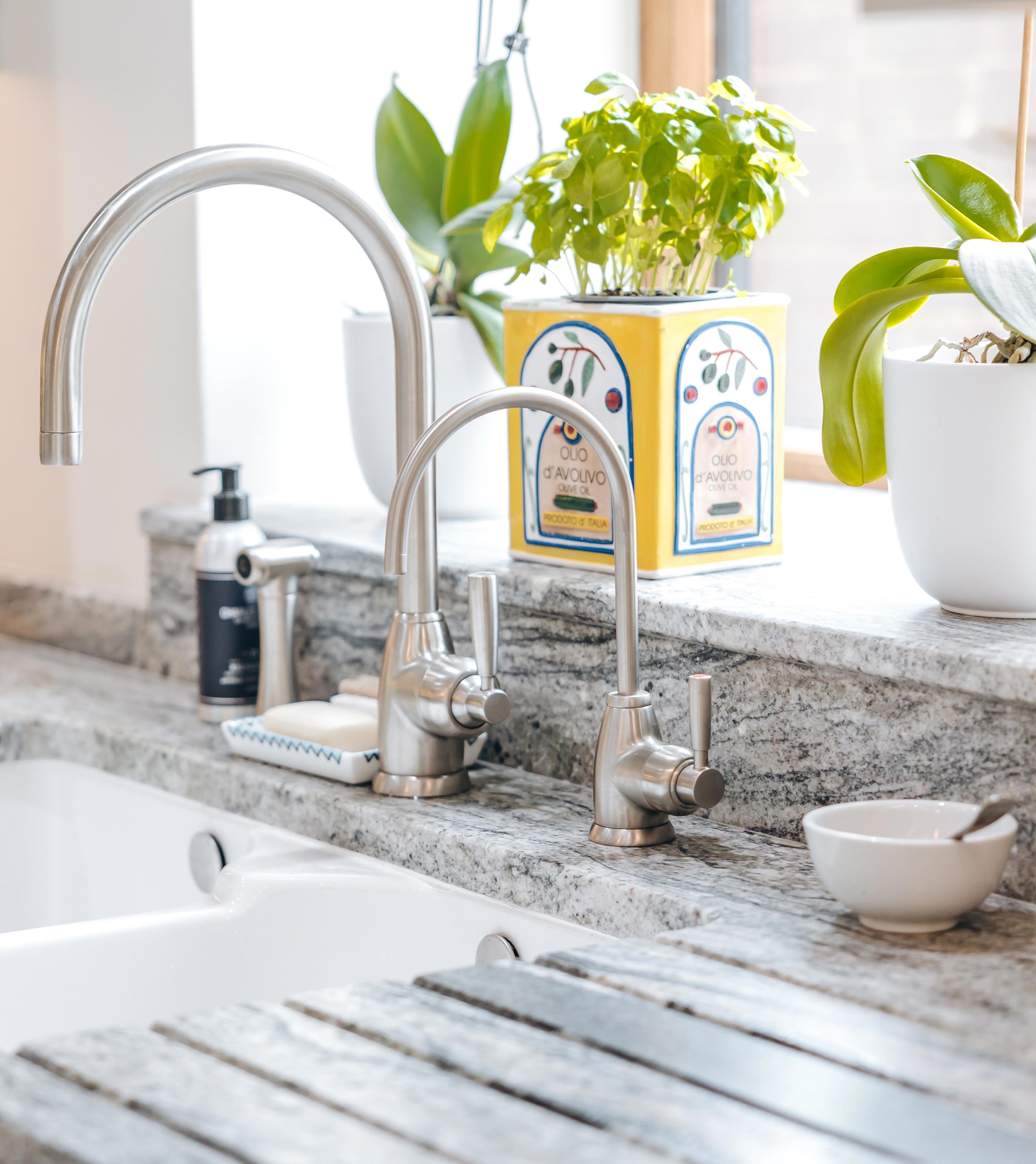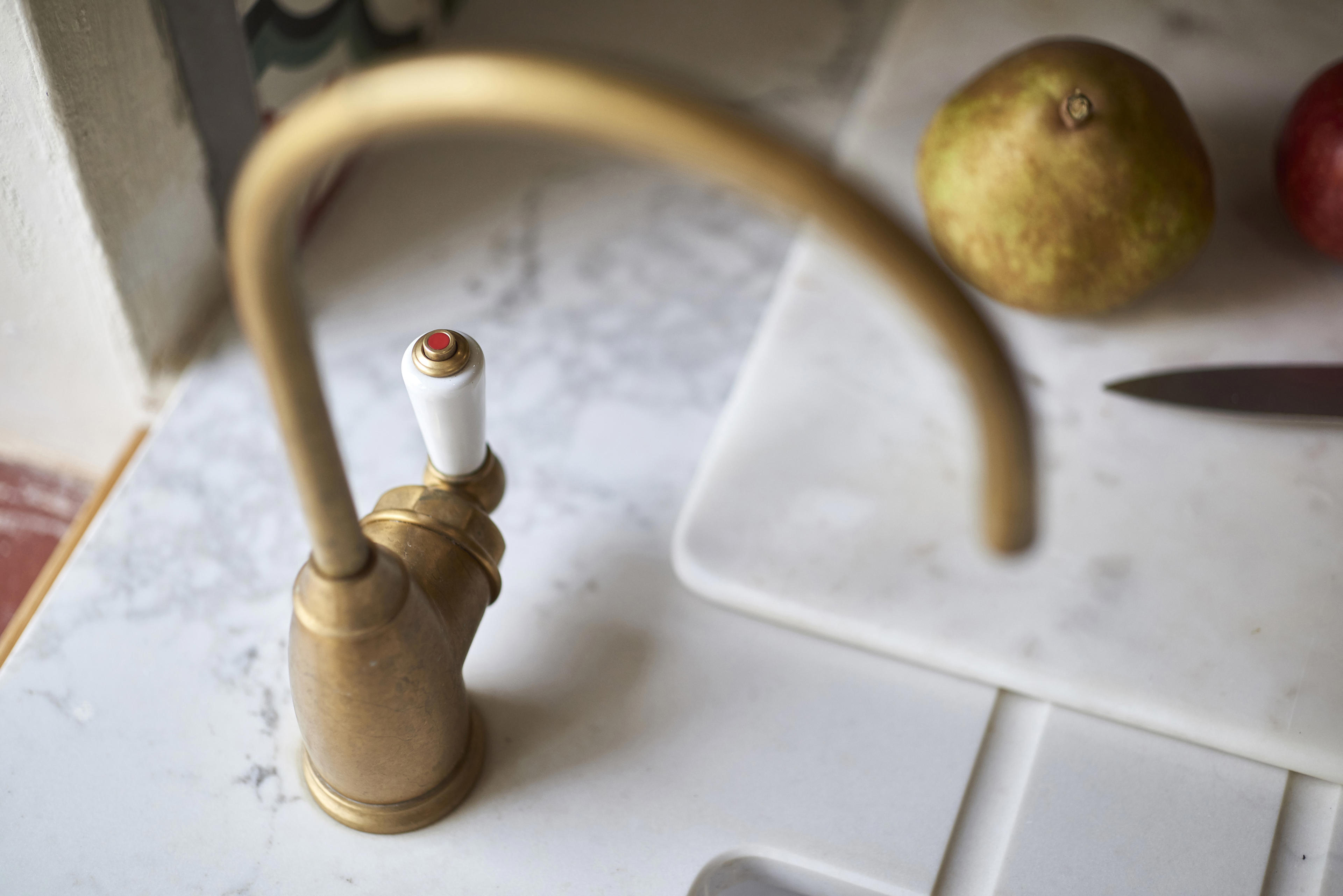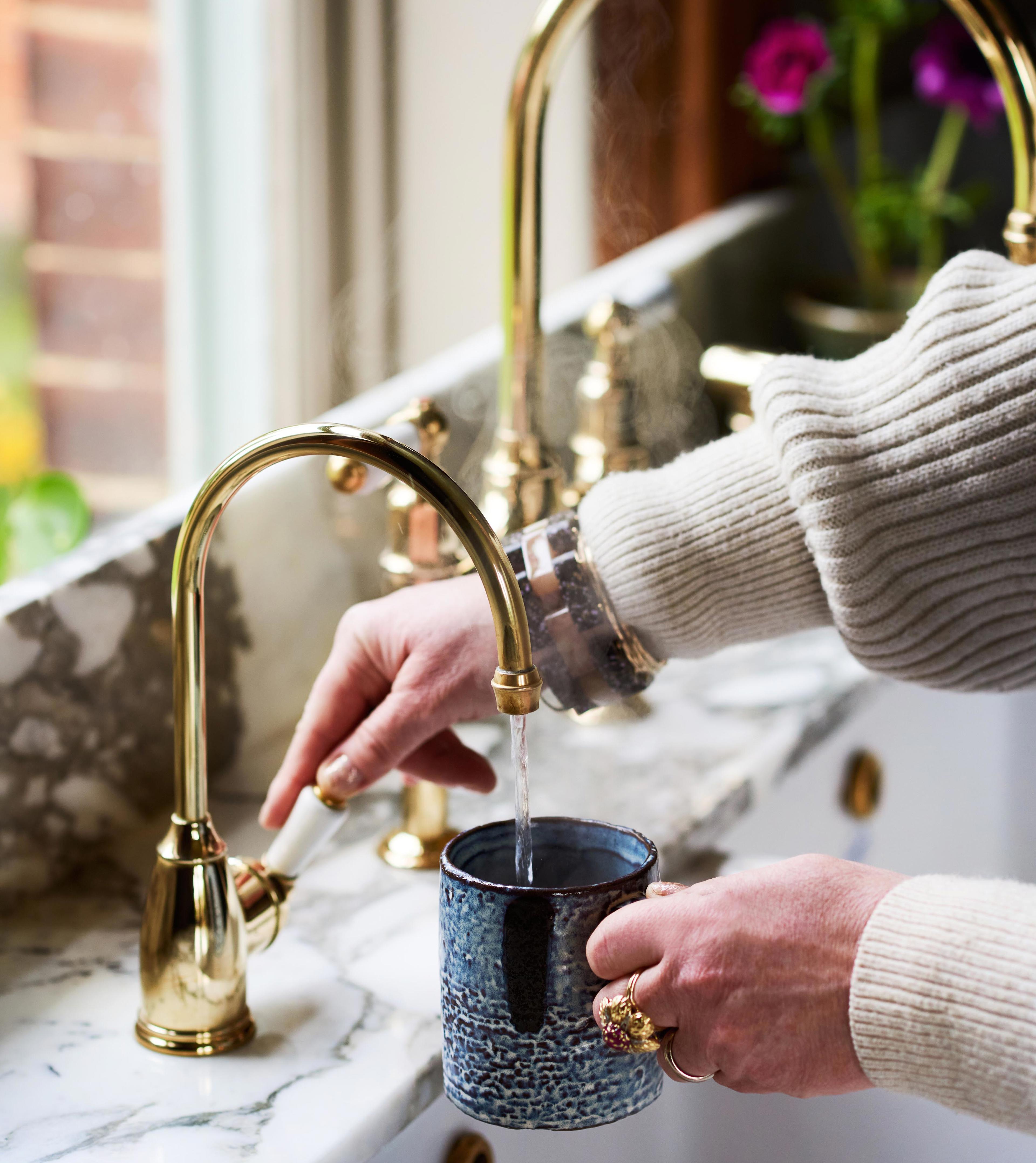 Perrin & Rowe hot water taps come in miniature versions, to sit alongside bridge mixers and other taps in our collection, as well as what we call 3-in-1 designs; one tap that dispenses hot, cold and near boiling water from just two lever handles. We see many customers installing hot water taps alongside smaller sinks as part of kitchen ‘coffee stations’ or bar areas, whilst our 3-in-1 designs mean that even if you are lacking in space or have a smaller kitchen sink you can still install a hot water tap.