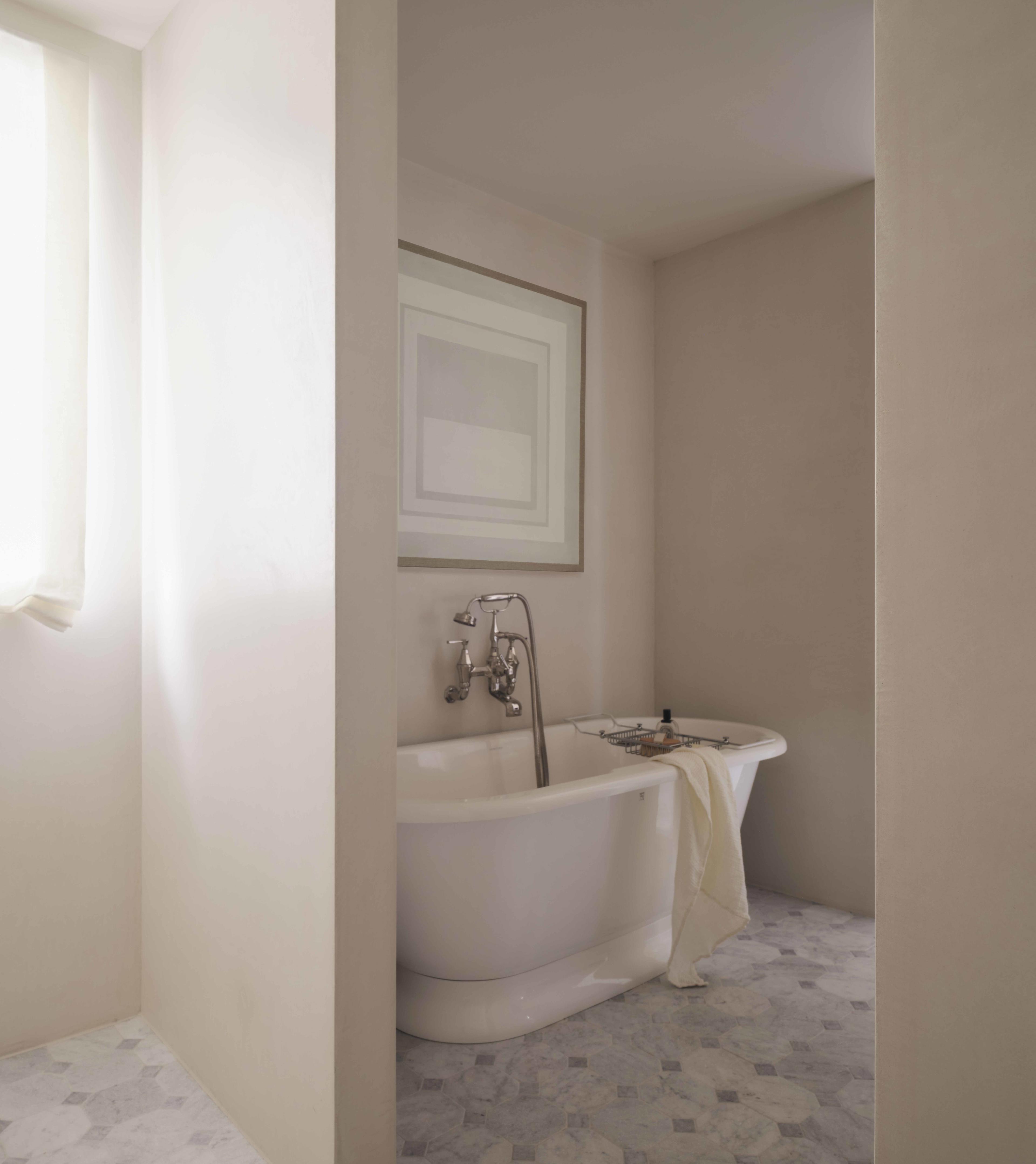 Alongside Perrin & Rowe, the York bath by Victoria + Albert was specified; a classic roll-top model with a modern twist thanks to its Volcanic Limestone™ composite material.