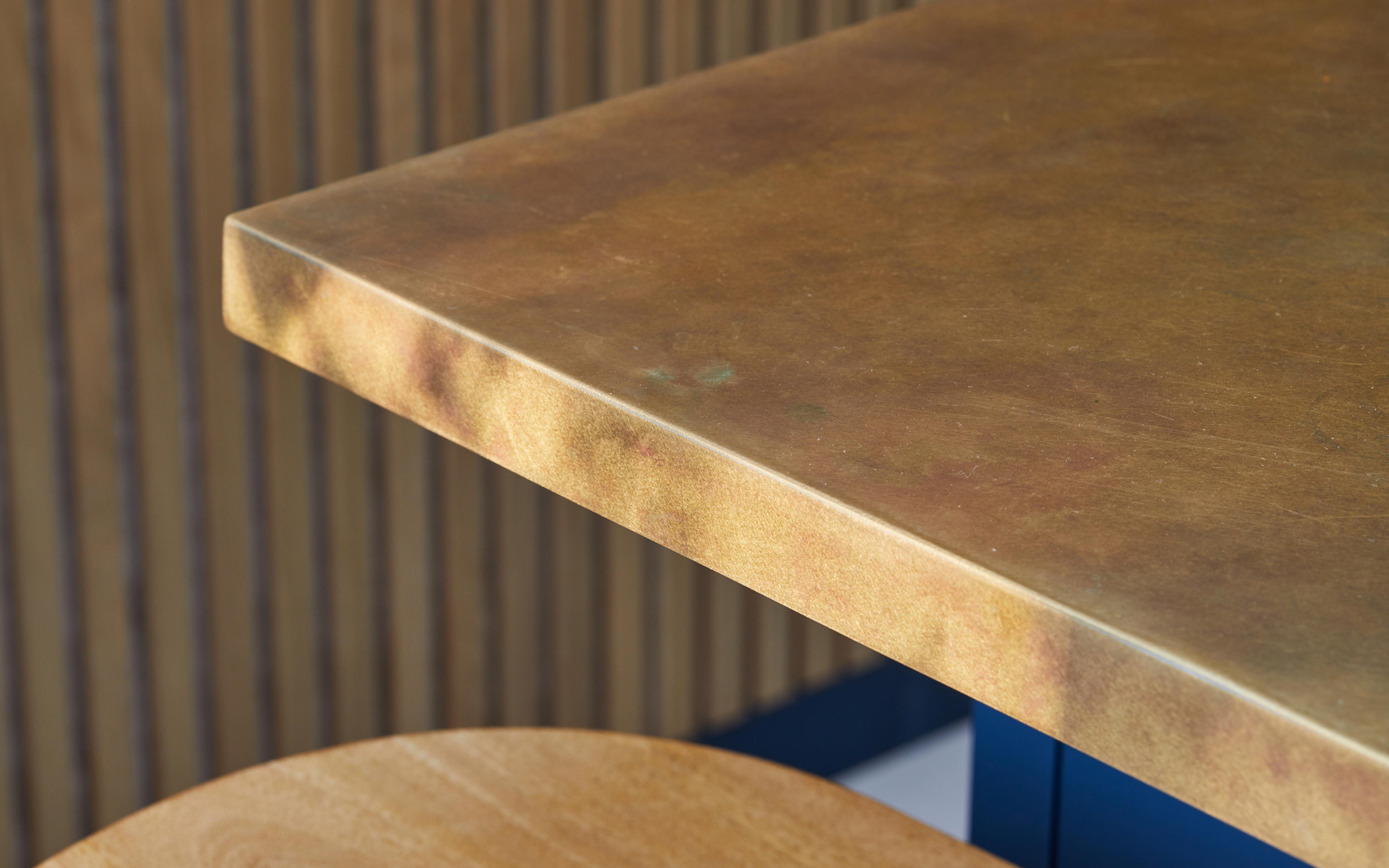The Main Company created a stunning brass kitchen island.