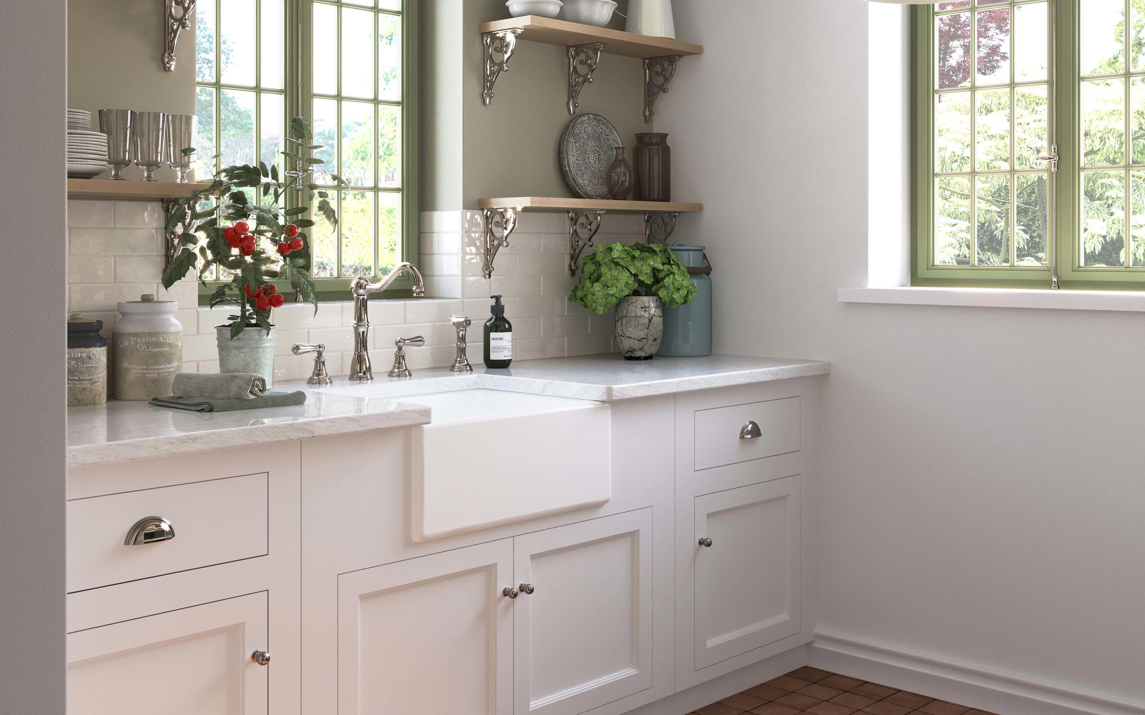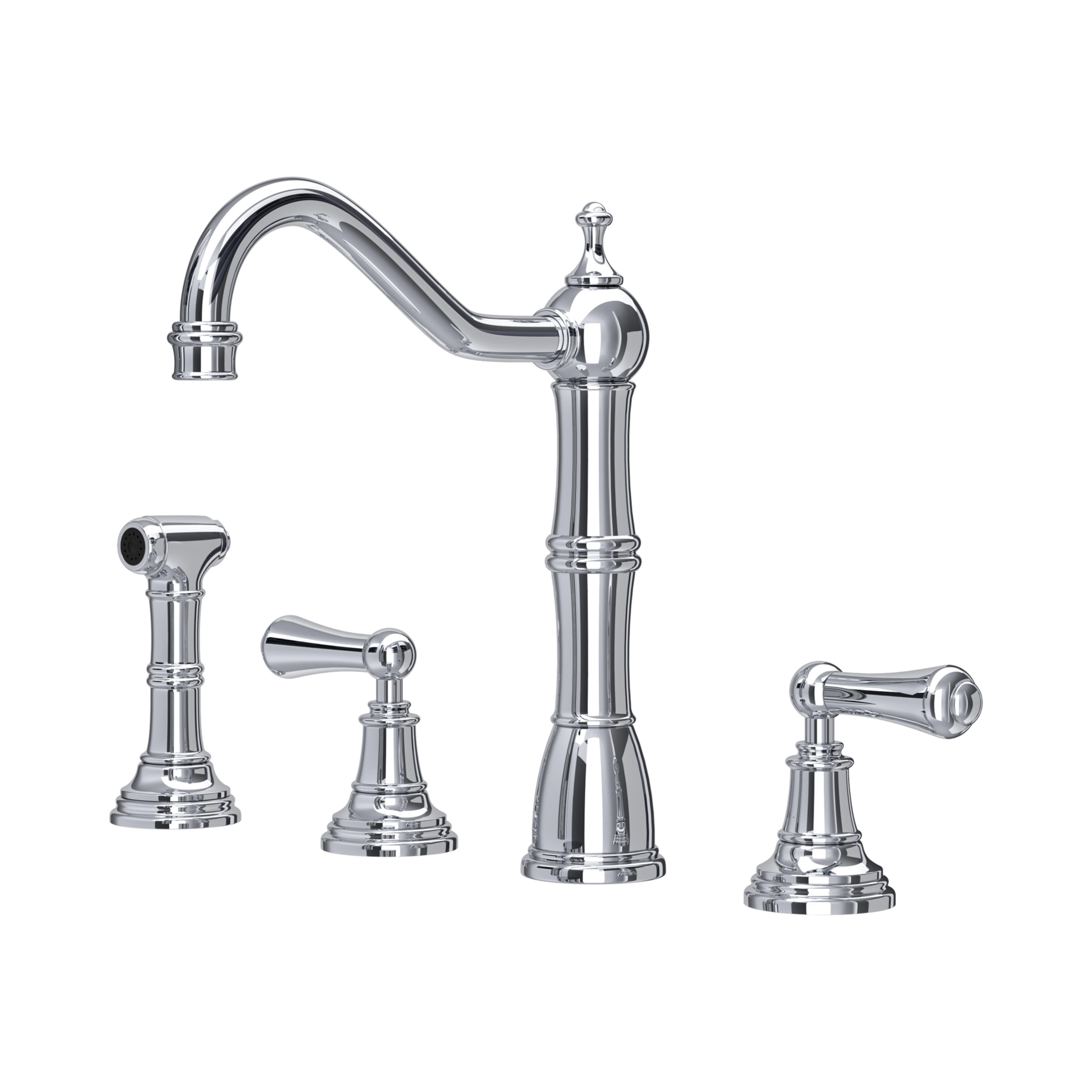 The Provence widespread sink mixer features a curvaceous spout and detailed design work - an elegant and unique addition to country or traditional-style kitchens. This version includes beautiful lever handles, and looks beautiful paired with a large sink.