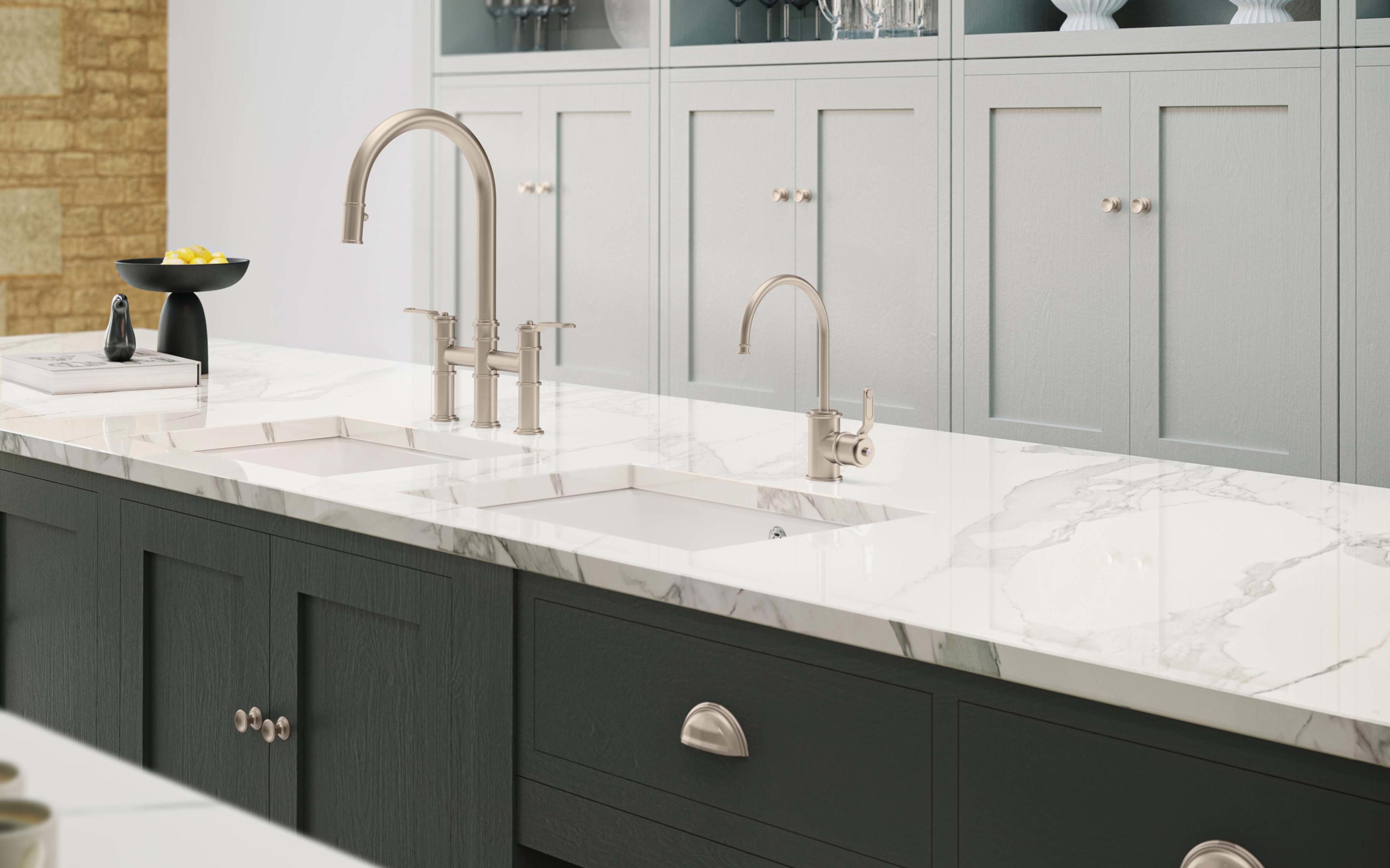 A strikingly modern take on the heritage of domestic brassware, Armstrong combines an industrial aesthetic with a designer's eye for balance and proportion. This is Perrin & Rowe's version of the classic kitchen bridge mixer tap.