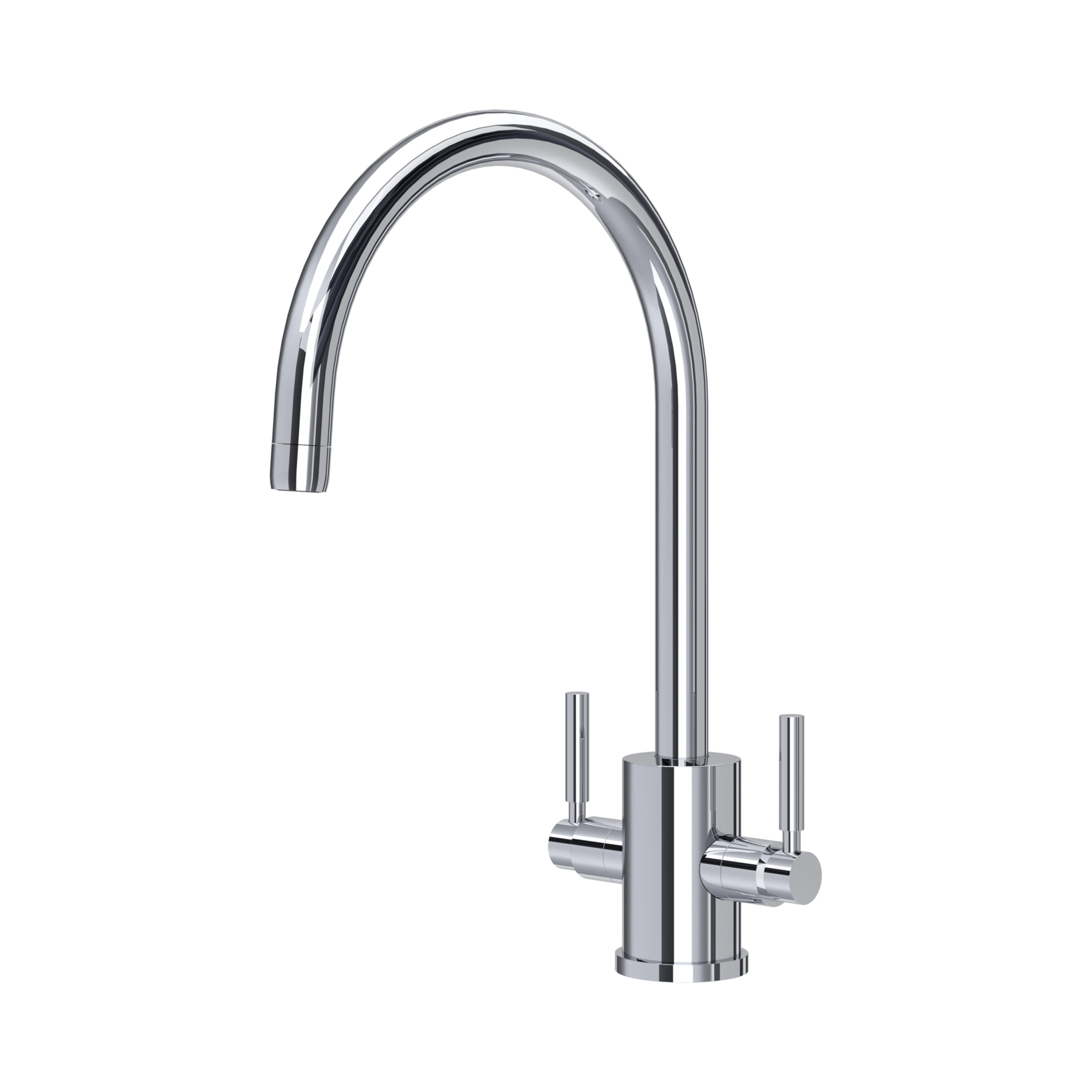 Featuring an elegant curved spout and softly sculptured base, the Juliet Round sink mixer with two hot and cold lever handles would sit beautifully in any classic or modern style kitchen.