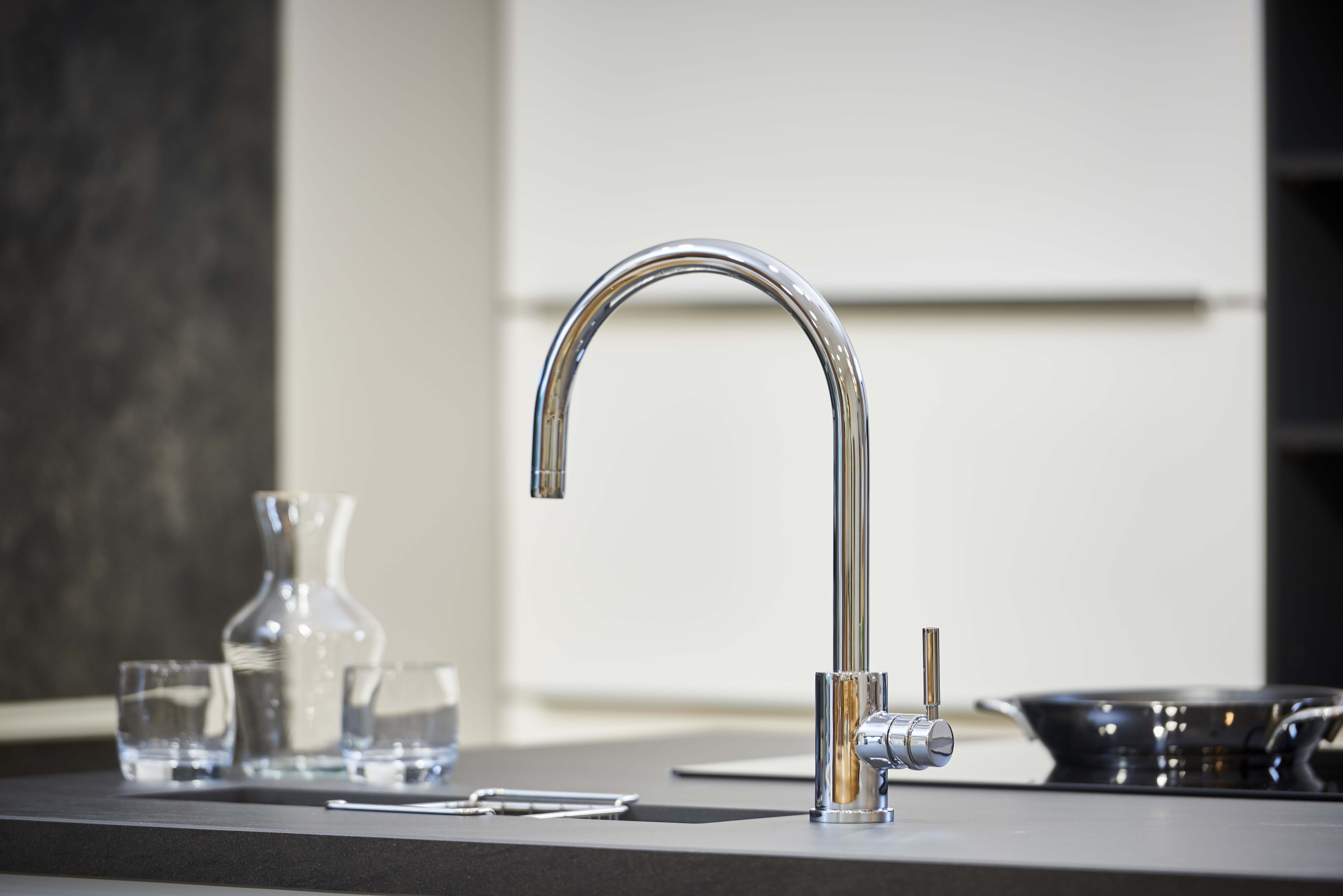Featuring an elegant curved spout and softly sculptured base, the Juliet Round sink mixer with two hot and cold lever handles would sit beautifully in any classic or modern style kitchen.