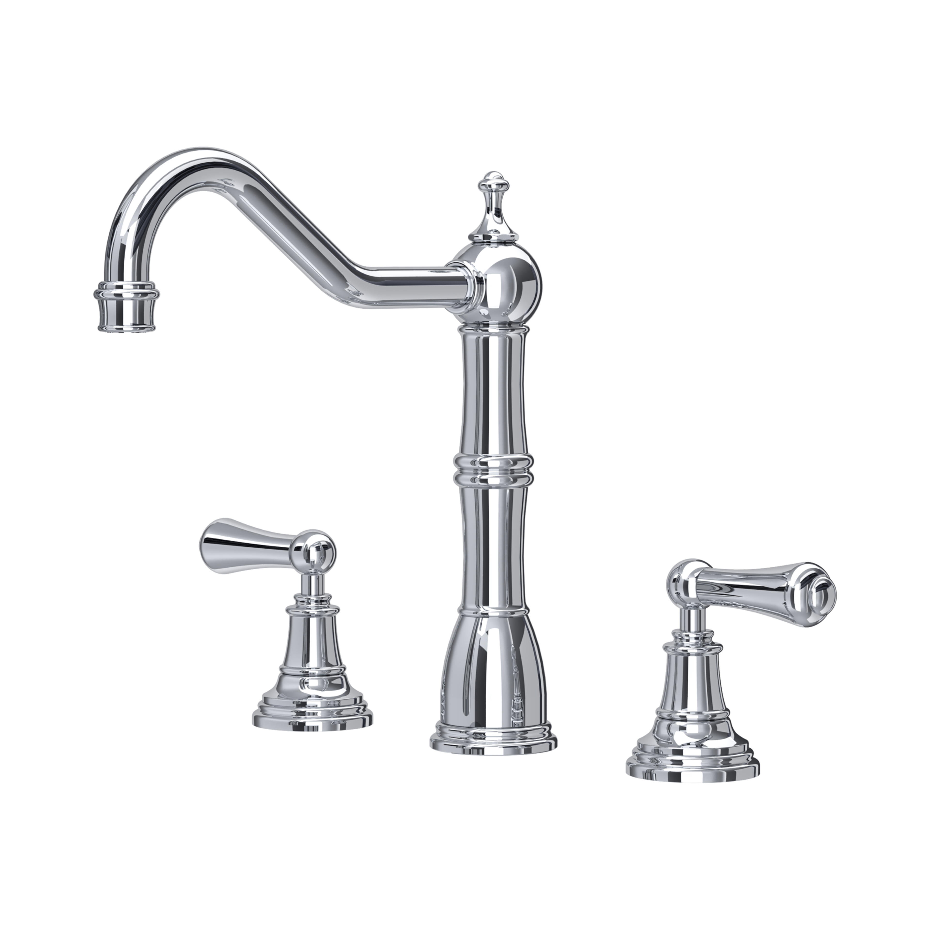 The Provence widespread sink mixer features a curvaceous spout and detailed design work - an elegant and unique addition to country or traditional-style kitchens. This version includes beautiful lever handles, and looks beautiful paired with a large sink.