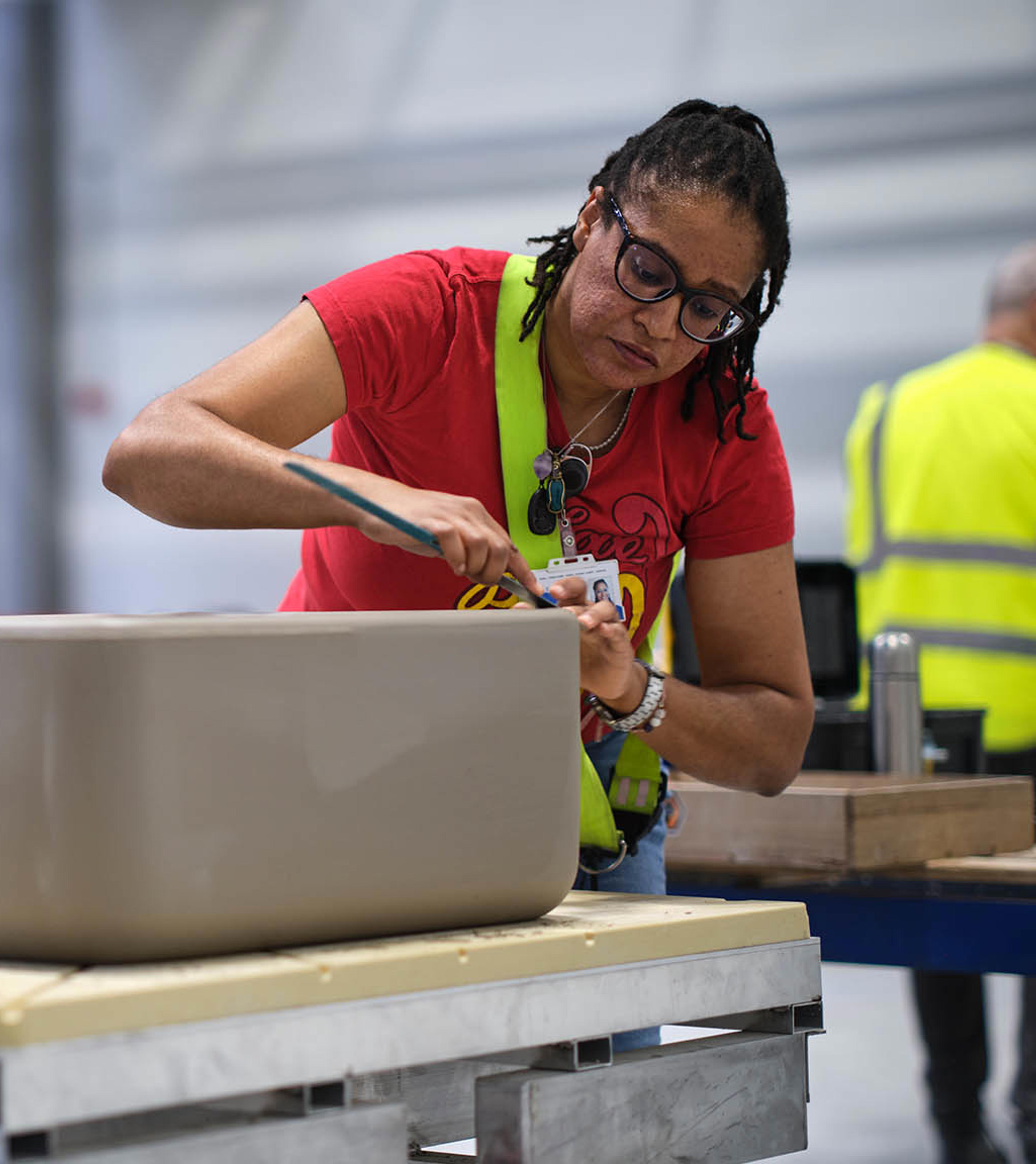Our first production line at our new site makes fireclay sinks. Shaws sinks will always be handcrafted, each one finished by a skilled maker who stamps their name underneath as a mark of authenticity. At the new site, we match these time-honoured skills with state-of-the-art technology to create sinks of unrivalled quality and durability.