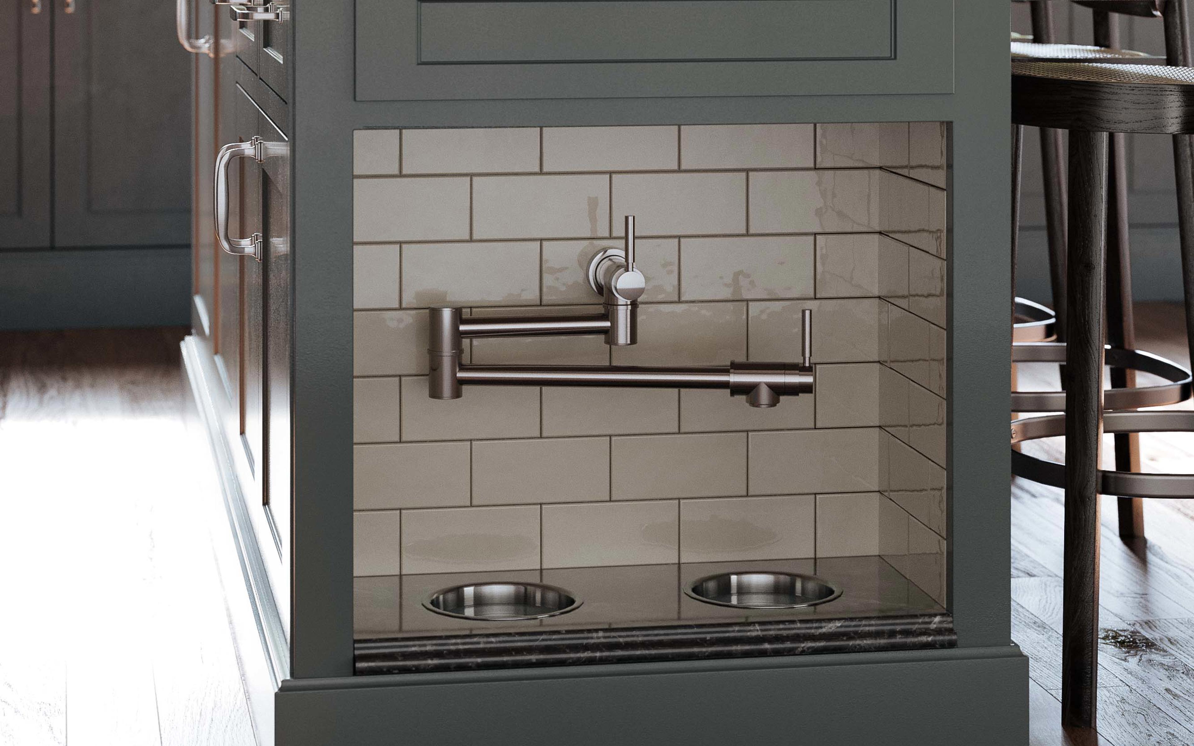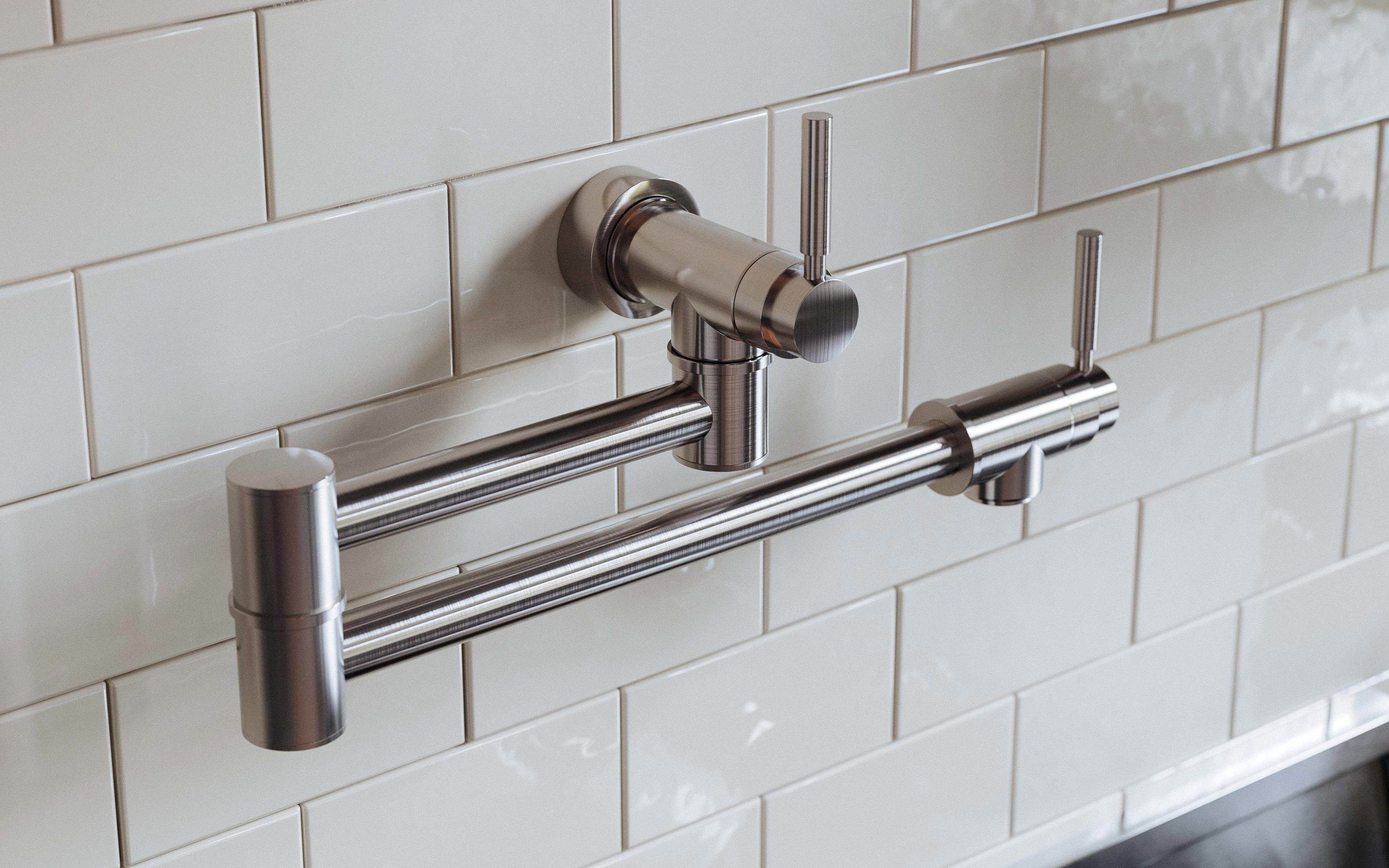 The pot filler is a sleek and modern pot filler designed to complement any of our contemporary collections.