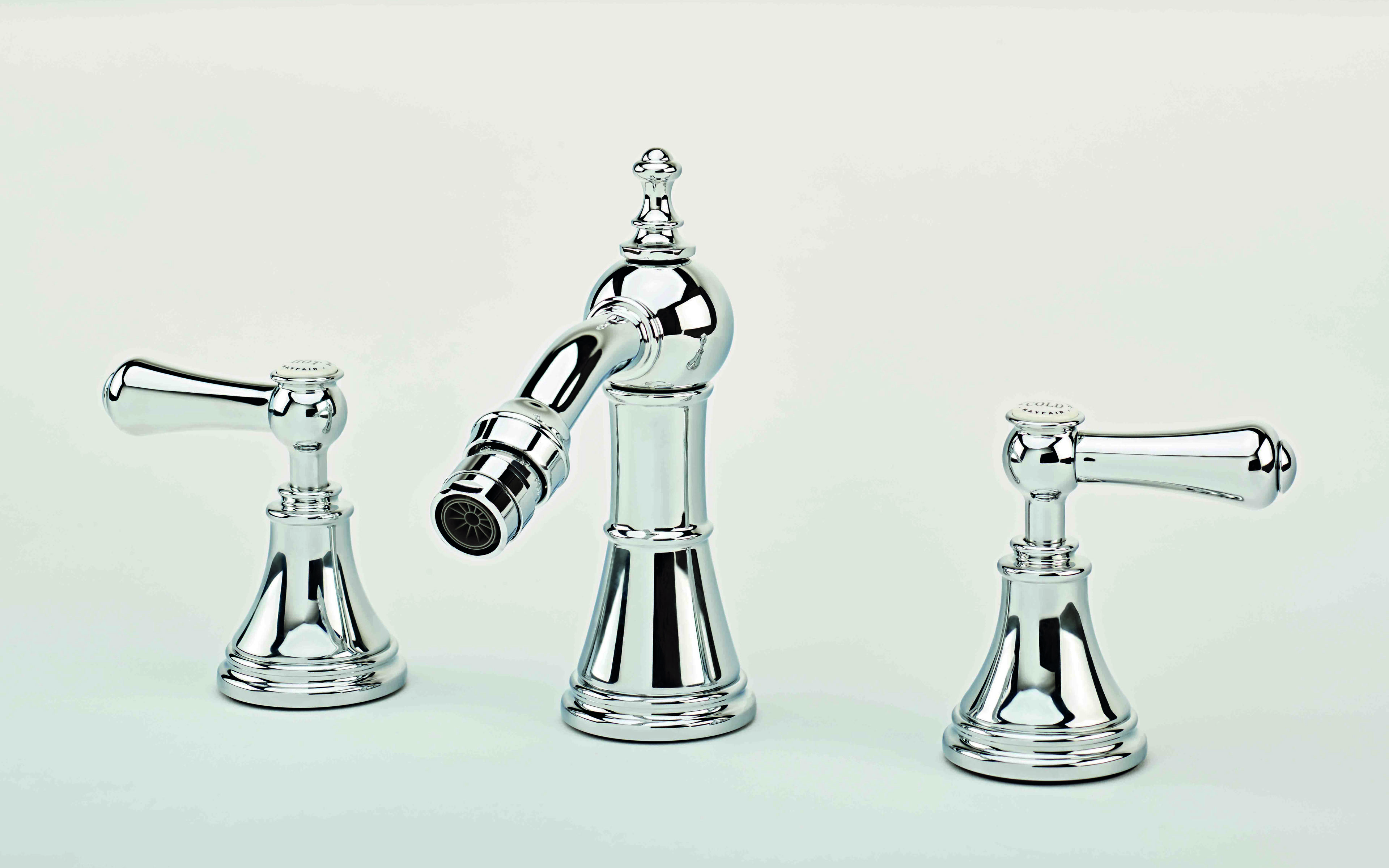 Ce mitigeur de bidet de style classique est doté de touches élégantes et d’inscriptions « Hot » et « Cold » en céramique sur les poignées. Avec vidage à tirette traditionnel.