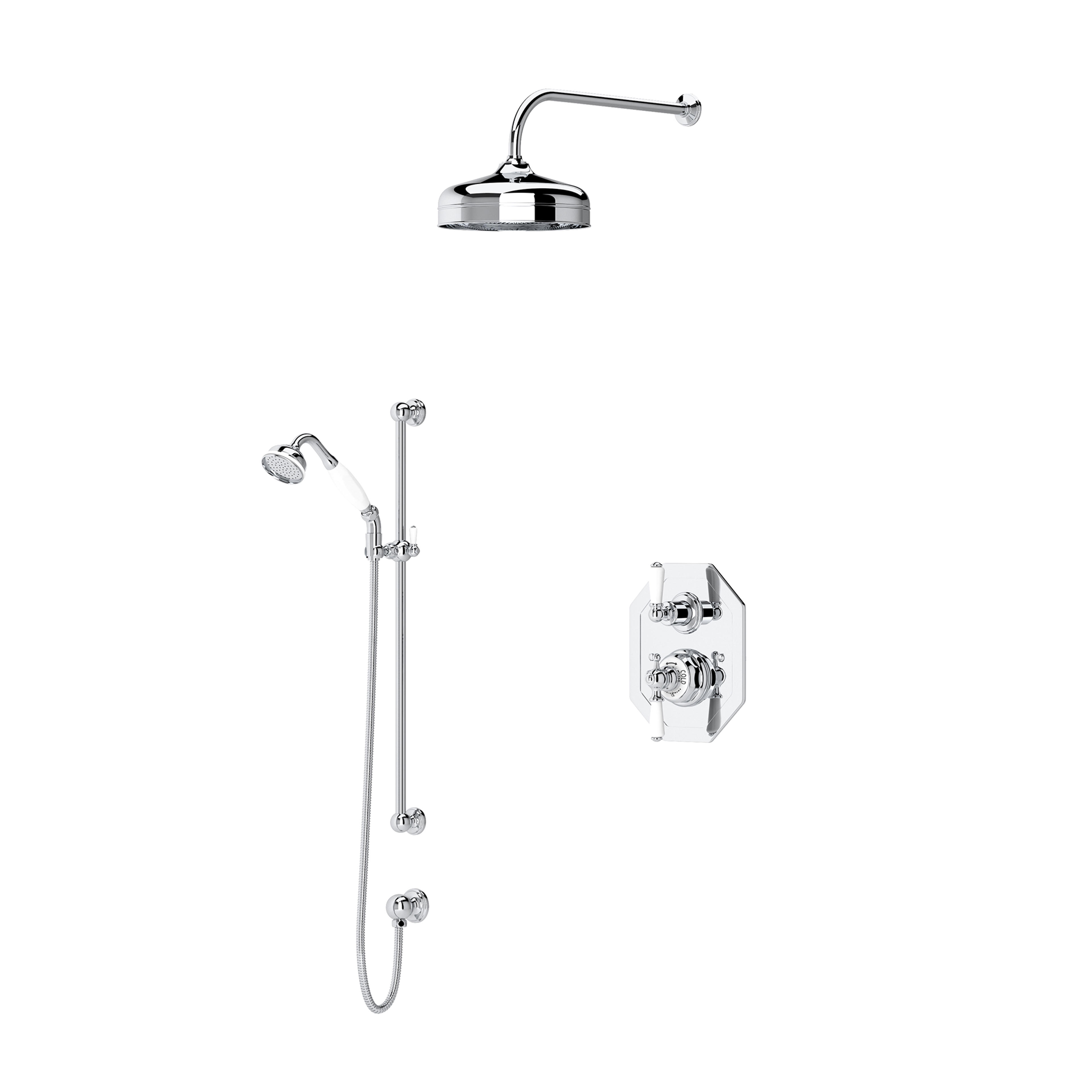 Il set doccia Traditional 2 con maniglie a leva è una delle configurazioni doccia consigliate per la collezione Traditional e comprende i seguenti componenti: