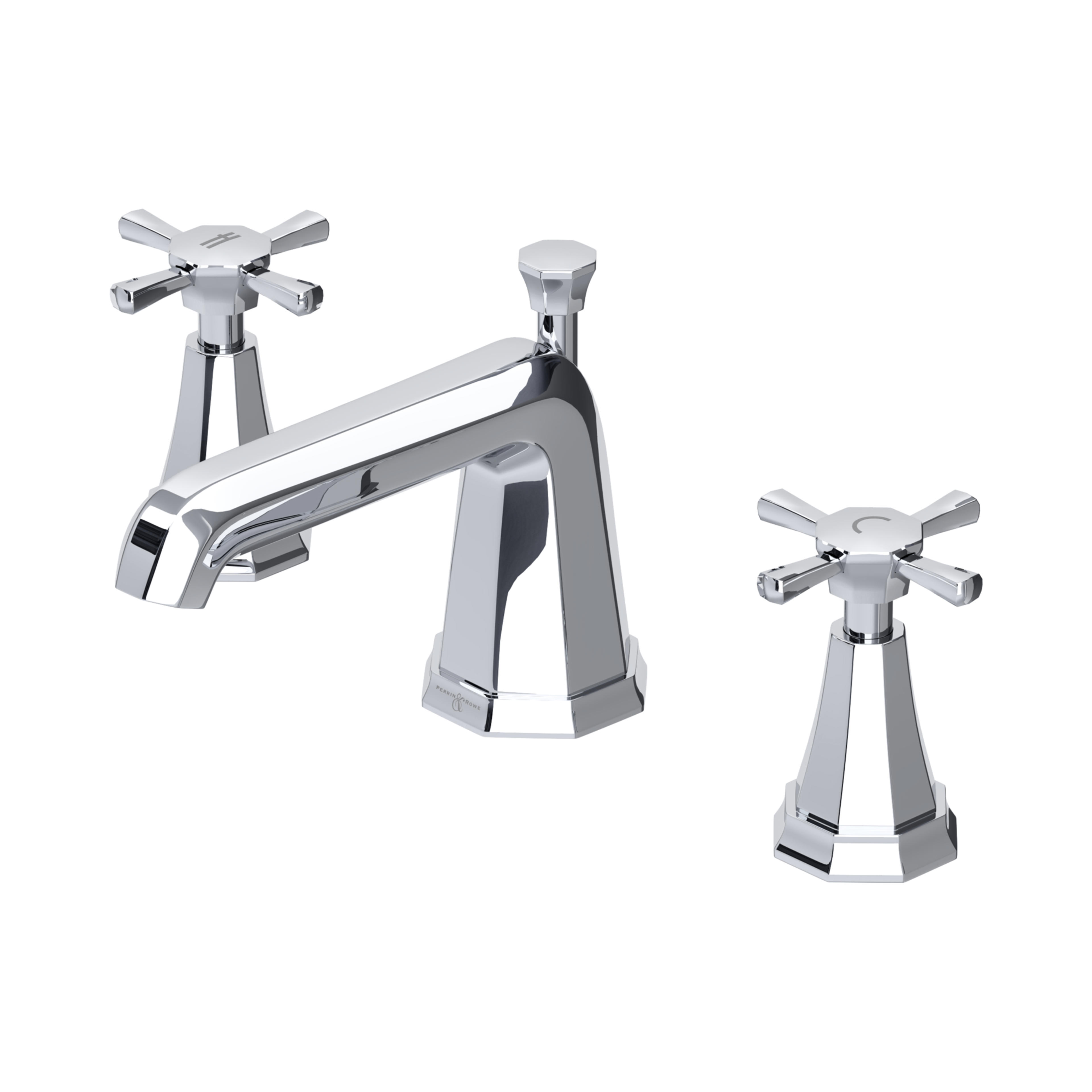 Questo miscelatore per lavabo Deco a tre fori con maniglie a croce presenta le bellissime linee e forme tipiche dell'epoca per creare un lavabo unico. Questo design si adatta perfettamente a un lavabo da appoggio o a colonna. Caratterizzato da asta di azionamento pop-up.