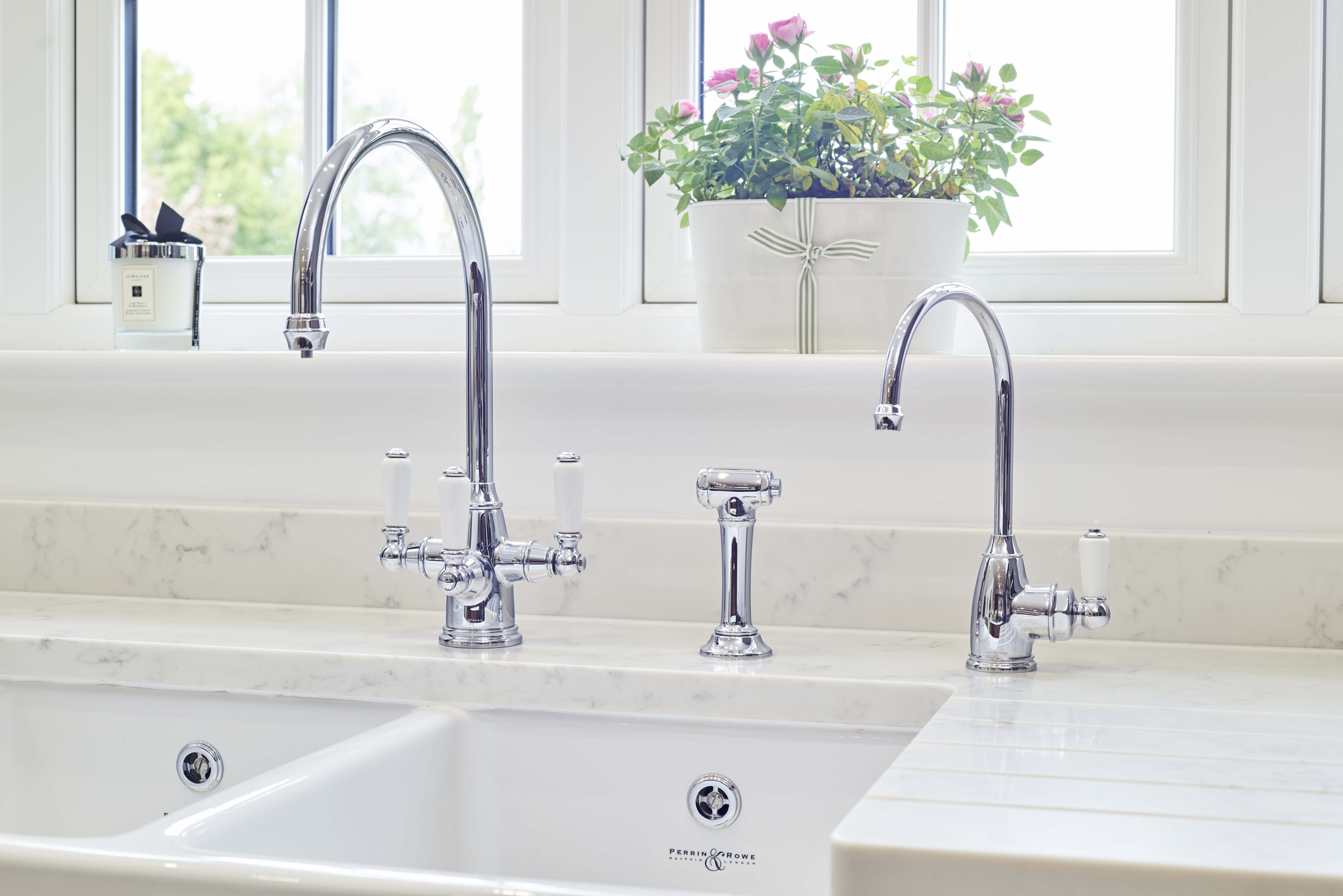 Splendidamente classico nello stile, senza rinunciare alla tecnologia: questo miscelatore per lavello Phoenician eroga acqua potabile calda, fredda e filtrata, oltre a essere dotato di un pratico erogatore a doccetta laterale. Questo modello ha tre leve; è disponibile anche la versione a due leve.
