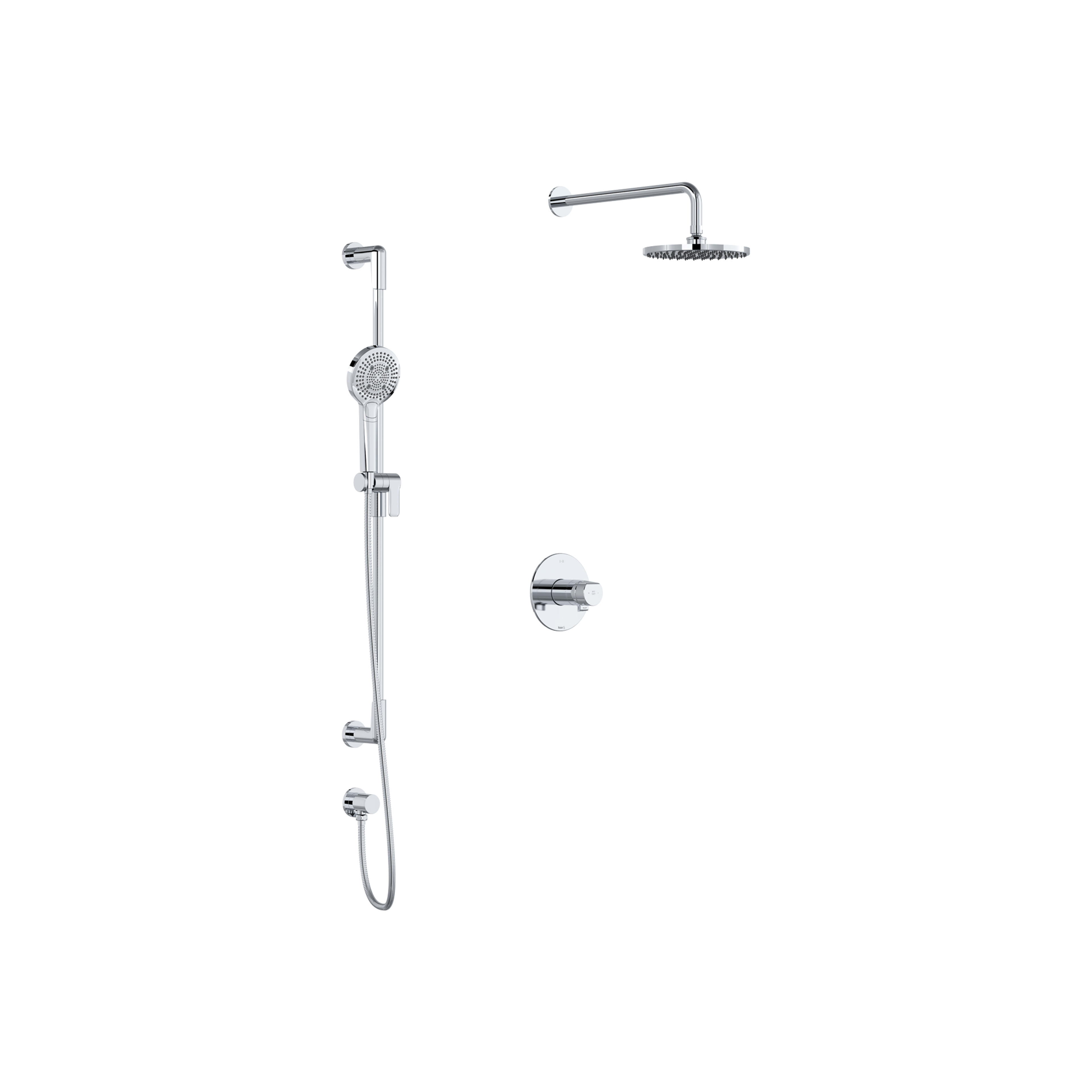 Kit doccia con soffione doccia e doccetta.Il kit include tutti i componenti necessari per creare la doccia perfetta: parte a incasso, kit esterno, doccetta multifuzione e binario di scorrimento e 20cm soffione doccia. La valvola termostatica/di compensazione della pressione stabilizza la temperatura dell'acqua anche in caso di una diminuzione di pressione del 50%.